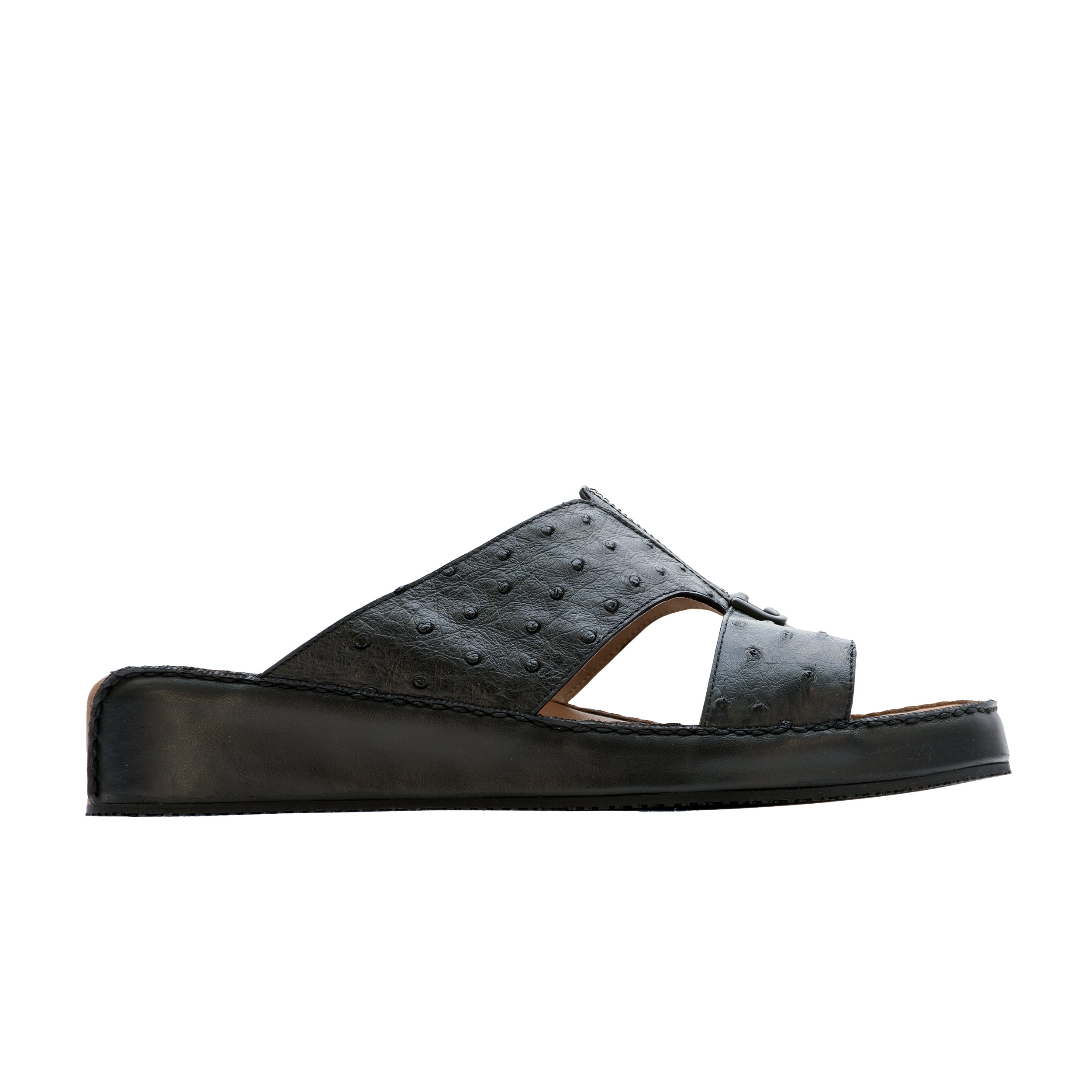 The Fratelli Rossetti Handmade Italian Sandal for Men is a luxurious and stylish sandal that is perfect for any occasion. This sandal features a traditional Arabic design in a dark brown color with high-quality ostrich skin leather. The leather is 100% pure and provides a comfortable feel, while the patterned outsole ensures durability and long-lasting wear. The sandal also features a buckle closure for easy on and off. SPECIFICATIONS: