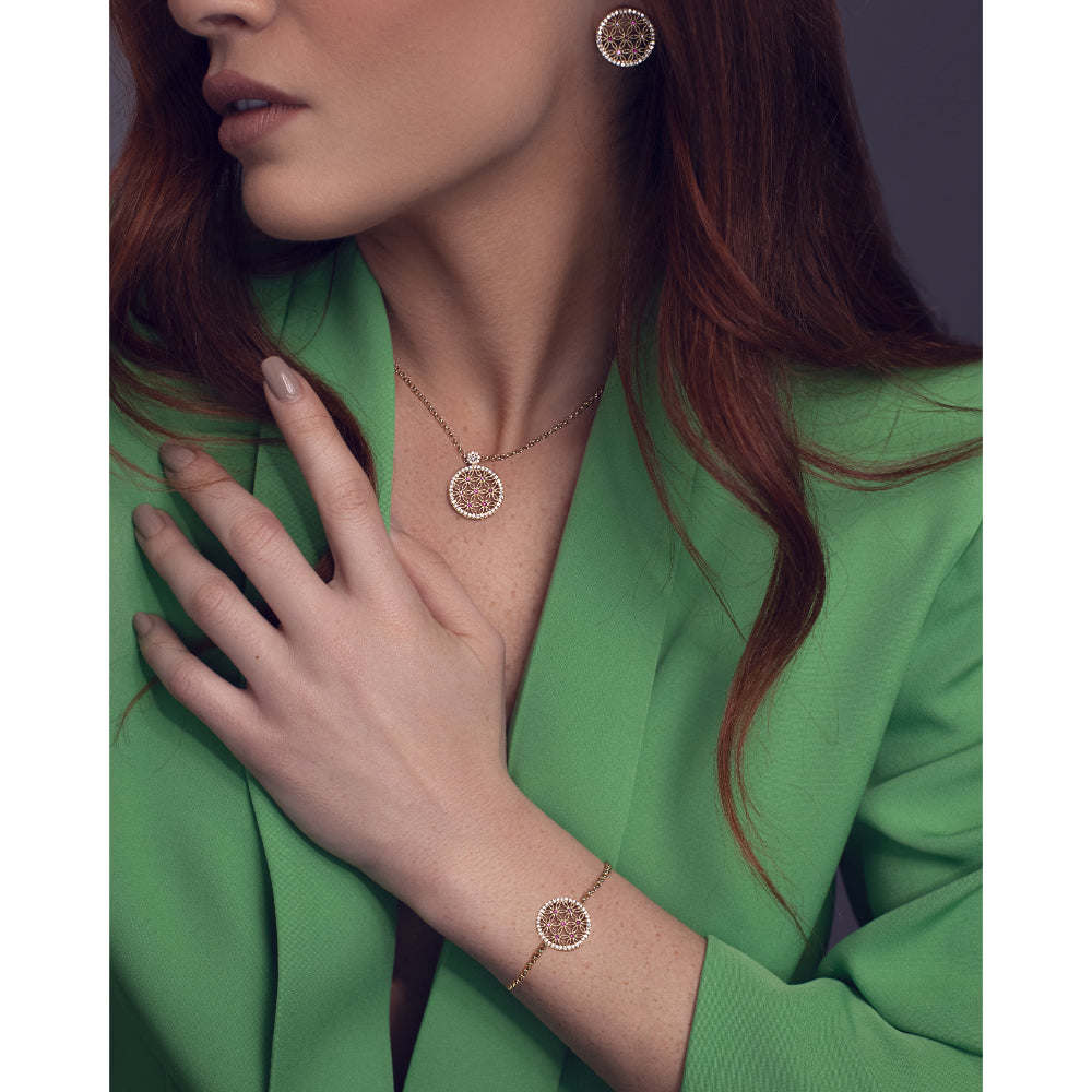 The Michella 18 Ct Gold Diamond Bracelet Basic is truly a timeless piece of jewelry. Its classic design radiates an elegance that is perfect for any occasion or modern look. The bracelet has an elegant and adorable centerpiece floral motif encrusted in diamonds and rubies, adding a sophisticated sparkle. The diamonds and rubies are handmade for an added luxurious feel, with an overall length of 16-18cms. To finish off the glamorous design, the bracelet contains 0.33ct VS2 diamonds and 0.13ct rubies, for a total weight of 3.98grams. Whether you’re dressing up for an evening out, or simply want to add some sparkle to your look, the Michella 18 Ct Gold Diamond Bracelet Basic is sure to make a statement. Its timeless design will look stunning for years to come and can be worn with any outfit to complete your look. With its elegant floral centerpiece and encrusted diamonds and rubies, you can expect to always look chic and sophisticated wherever you go. SPECIFICATIONS: