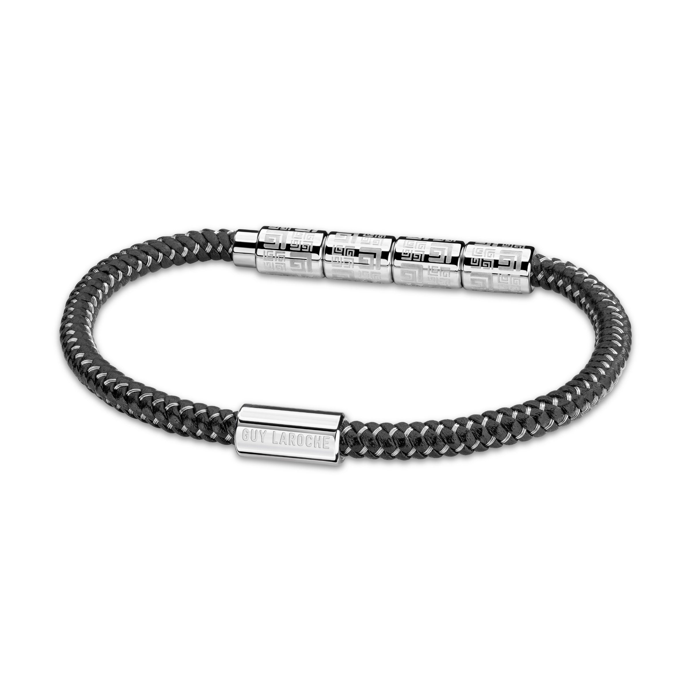 Guy Laroche Pierre Stainless-Steel Bracelet With Black-Silver Leather Cord