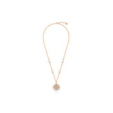 | An epitome of sophistication and elegance, Gisele necklace is wrapped in flawless savoir-faire and refined beauty. The mother of pearl pendant and pearls adorning the rose gold necklace play a harmonious melody of luxury and grace. |