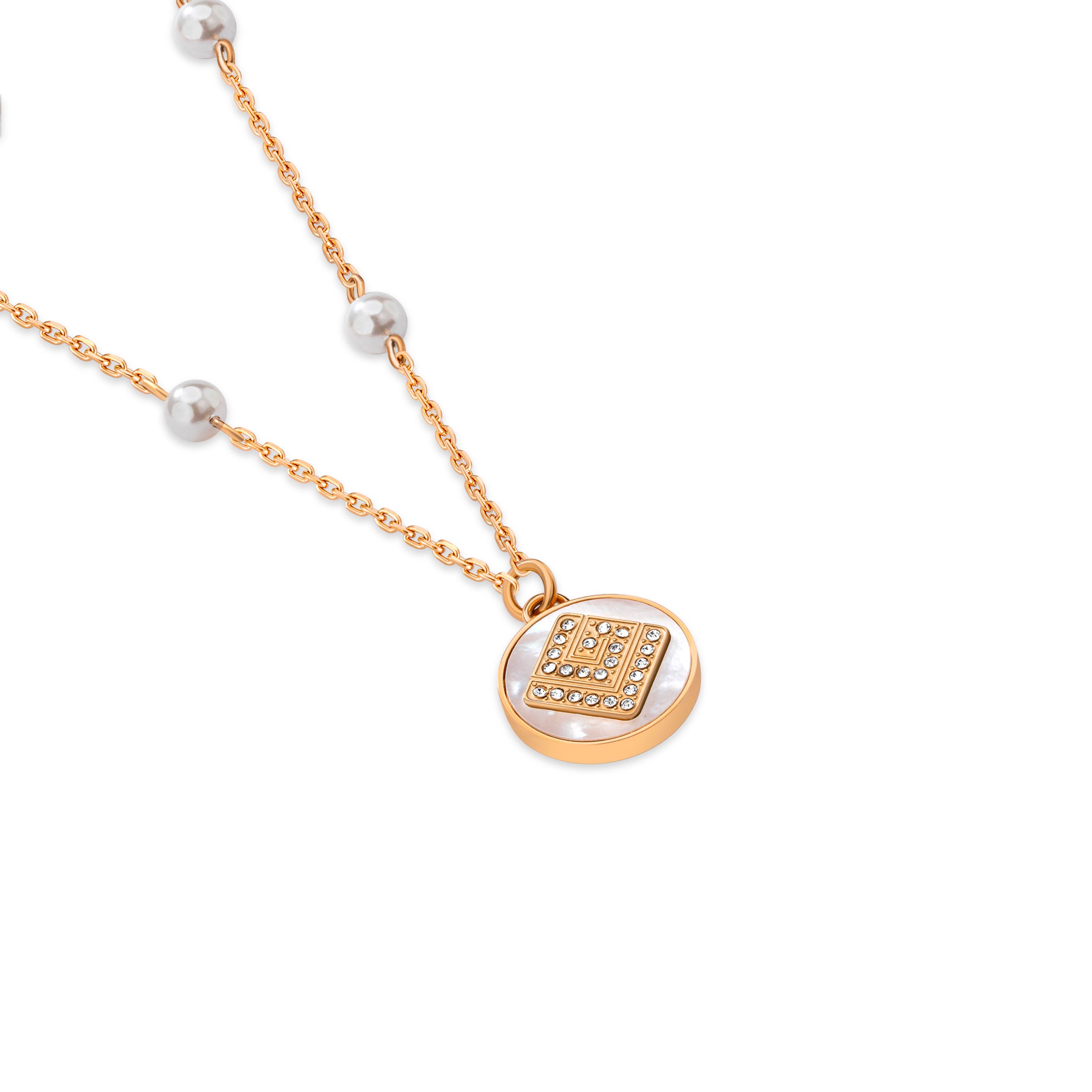 Guy Laroche Gisele Ladies Small Rose-Gold Necklace With Mother Of Pearl & Crystals