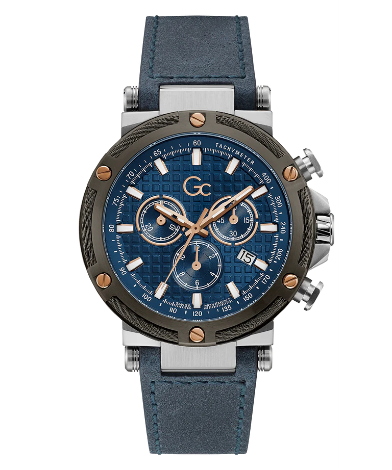 | The GC UrbanCode Yachting Chrono Gents Watch is a luxurious and stylish timepiece designed for the fashion-forward men. This watch features a bold and striking blue dial with intricate guilloché details that add depth and texture to the design. The gun-coloured bezel is adorned with decorative rose gold tone screws and a tone-on-tone cable, giving a unique touch to the watch. The contrast of the brushed and polished silver tone case adds to the overall elegance of the watch. One of the standout features of this watch is the oversize crown-protector, adding a rugged and sporty element to its design and also providing protection to the crown. The blue leather strap complements the blue dial and adds a touch of luxury to the watch.This watch is not just all about its stunning design, but it also boasts impressive functionality. It is equipped with a reliable chronograph movement, which allows for accurate timekeeping and easy timing of events. The GC UrbanCode Yachting Chrono Gents Blue Dial Blue Leather Strap Watch is a perfect combination of style and functionality. It is a statement accessory that will elevate any outfit, making it a must-have for the modern man. SPECIFICATIONS • Brand: Gc • Gender: Men • Product: Y54013G7MF • Attachment Color: Blue • Band Material: Genuine Leather • Buckle/Clasp: Regular Buckle • Case Color: Silver & Gun-Metal • Case Diameter: 44 mm • Case Finish: Brushed/Polished • Case Material: Stainless Steel • Case Shape: Round • Dial Color: Blue • Water Resistance: 100 About Brand GC is a luxury watch brand that was founded in 1997 in Switzerland. The brand prides itself on creating high-quality, elegant timepieces that combine traditional Swiss craftsmanship with modern design elements. GC watches are known for their distinctive styles, which range from classic to contemporary. The brand offers a wide variety of collections for both men and women, each with their own unique aesthetic and features. In addition to their eye-catching design, GC watches also boast precise Swiss movements and function with exceptional accuracy. They are made with premium materials such as stainless steel, sapphire crystal, and genuine leather, ensuring durability and longevity. |