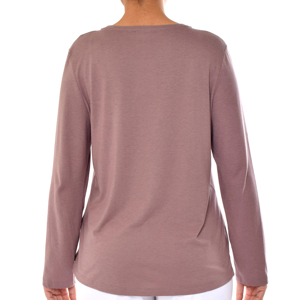 نم تصميم هذا القميص طويل الاكمام من مزيج القطن الخفيف المشروط اللذي يبدو رائعا على البشرة وسهل الإرتداء يتميز بخط الرقبة هيملين المدور مع ازرار أم اللؤلؤ .