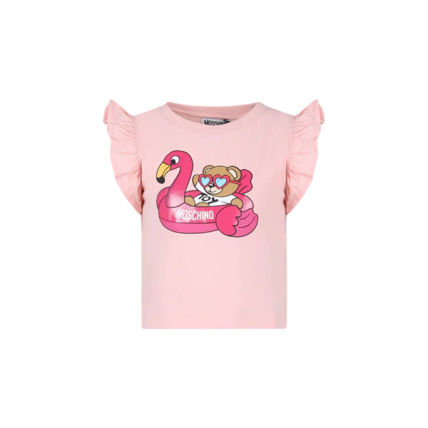 Moschino Kids Girl's Pink T-shirt with Teddy Bear and Flamingo