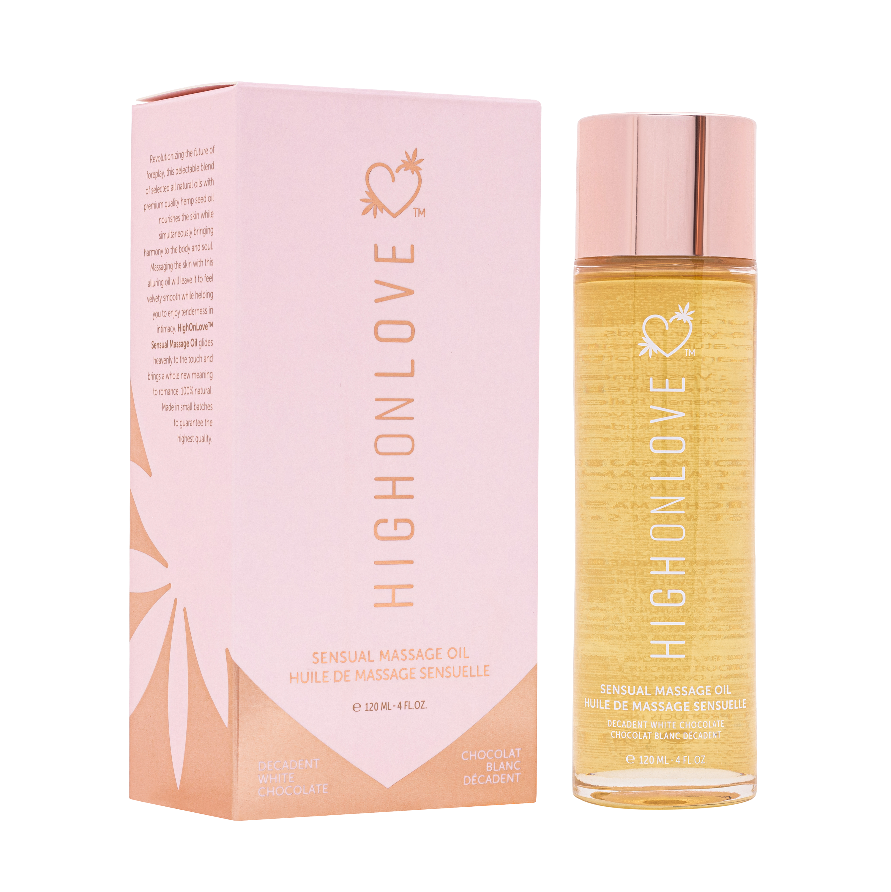 High On Love Decadent White Chocolate Massage Oil is a decadent and luxurious massage oil that is designed to enhance the sensual experience for both partners. It is specifically formulated with natural oils and premium hemp seed oil to nourish the skin while providing a smooth and sensual massage experience. The oil has a light and non-greasy texture, making it easy to apply and leaving the skin feeling silky and smooth. The white chocolate scent of this massage oil is sensual and inviting, adding an extra layer of indulgence to your intimate moments. The natural oils used in this product are also known for their nourishing and moisturizing properties, making it a great choice for those with sensitive skin. Upgrade your foreplay routine and take your intimacy to the next level with High On Love Decadent White Chocolate Massage Oil. Whether you're looking to relieve tension or simply enhance the pleasure of your massage, this luxurious oil is the perfect addition to your sensual toolkit. So, indulge in a little decadence and elevate your sensual experience with High On Love Decadent White Chocolate Massage Oil. SPECIFICATIONS