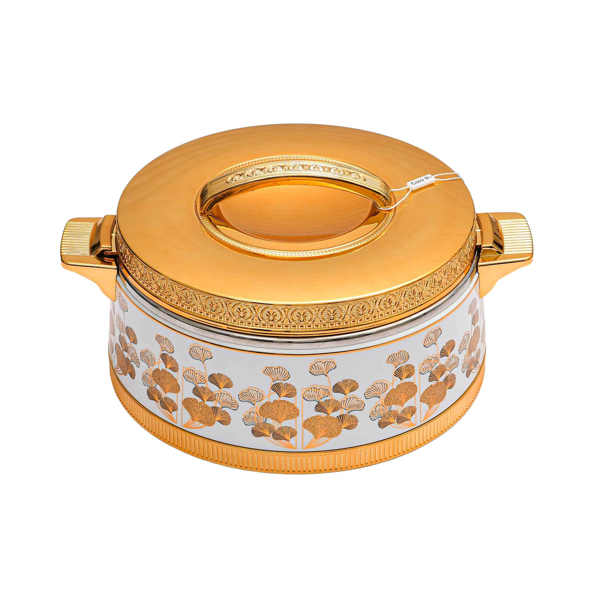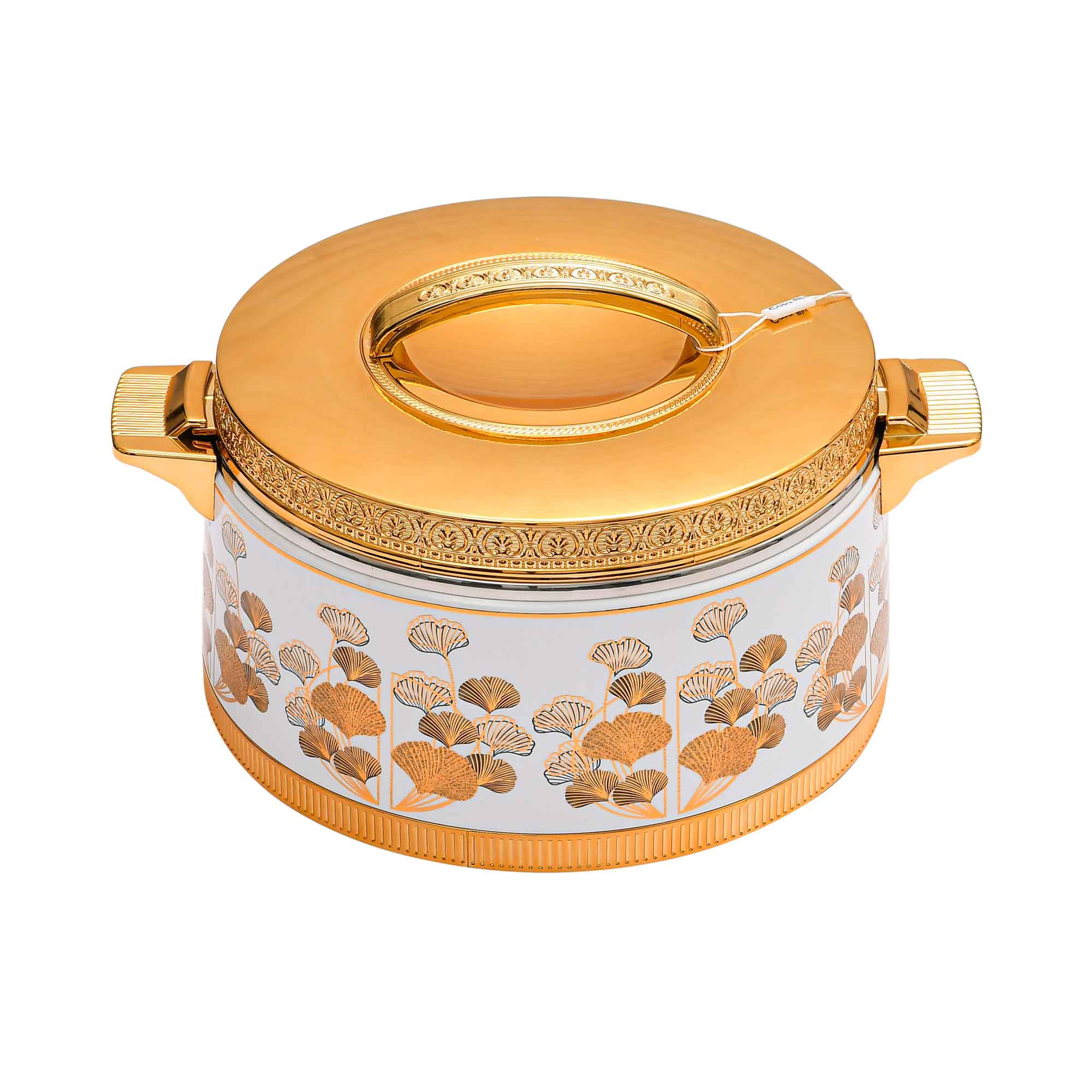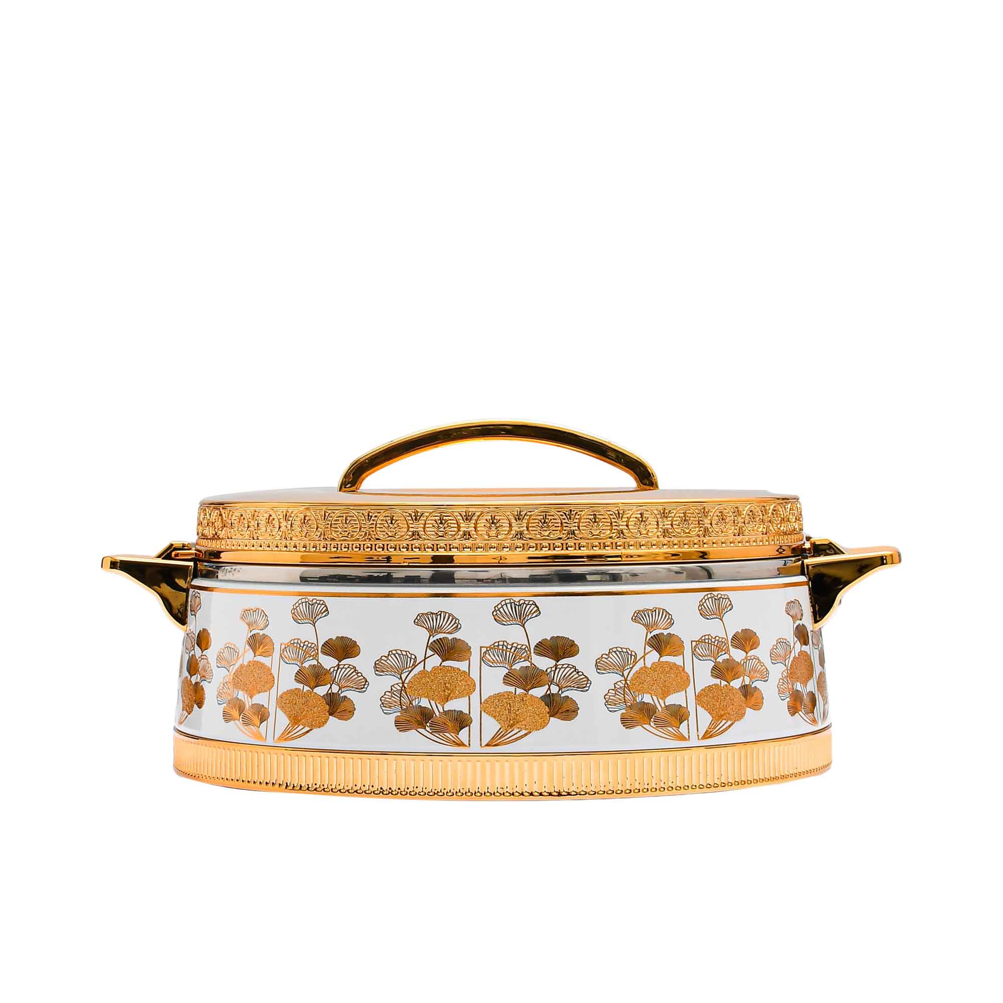 - Lid & Handles: Gold-tone finish with an elegant handle