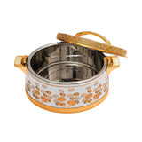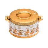 Enhance your dining experience with the Casa Blu HOP01055F04 5.5L Metal Food Warmer. Featuring a stunning floral pattern, this premium-quality warmer is designed to maintain the perfect temperature for your meals. Its durable metal construction with gold accents adds a touch of luxury to any table setting. Ideal for family gatherings, celebrations, and everyday use.