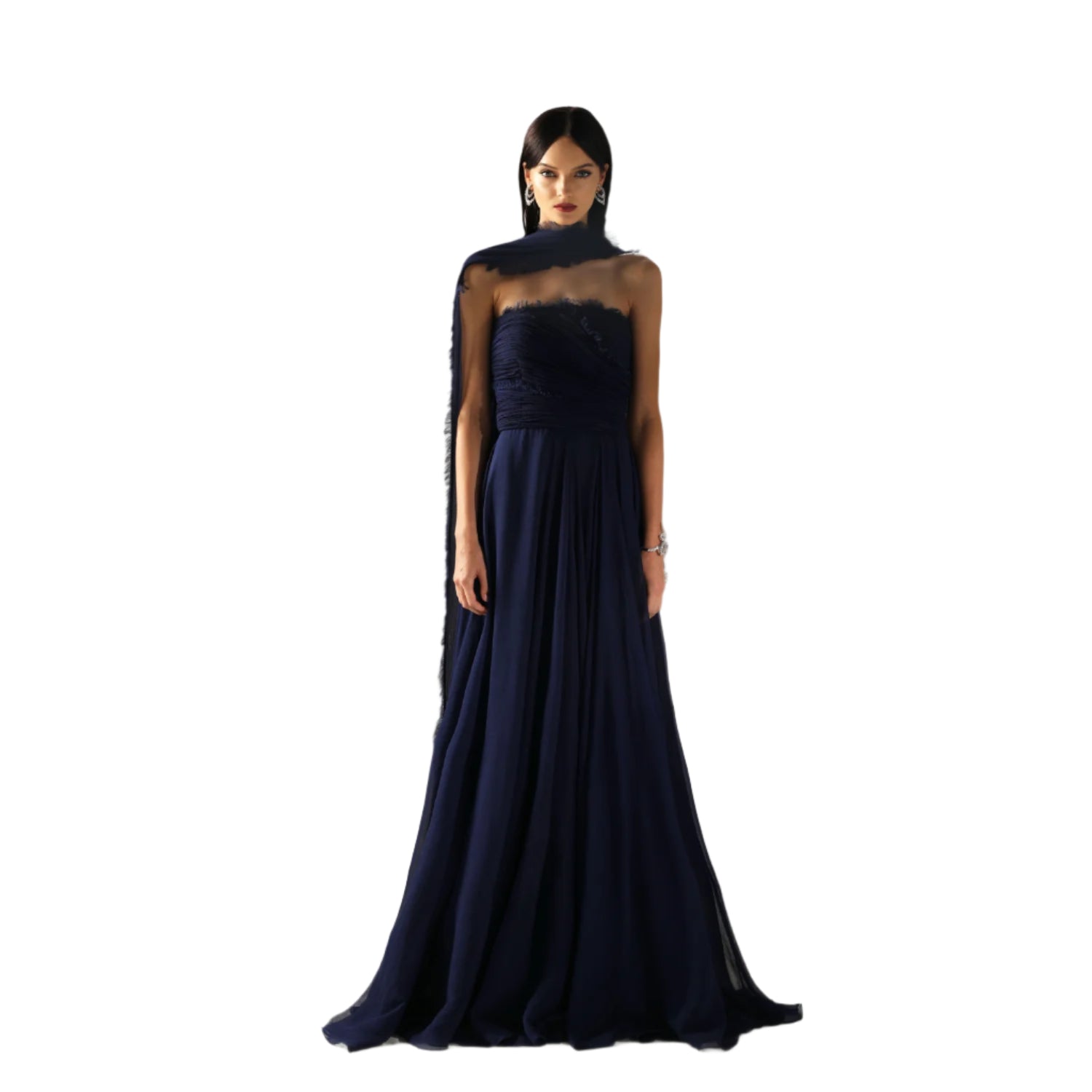 | The Velvety Couture Women's ILLY Blue Sapphire Dress is a breathtaking creation that embodies the perfect blend of elegance and contemporary style. This strapless dress, crafted from luxurious textured chiffon, commands attention with its rich blue sapphire hue, evoking a sense of depth and allure that is sure to captivate. The dress features a meticulously hand-draped bodice, which enhances its refined aesthetic while offering a flattering fit that beautifully contours the body's natural shape. The craftsmanship of the bodice adds dimension and interest, making it a standout element of the design. A concealed zip fastening ensures a seamless and polished appearance, allowing the dress's elegant lines to remain uninterrupted and maintaining the focus on its stunning silhouette. Adding a unique touch, the dress includes an attached shawl with frayed edges, introducing an element of softness and movement. The flared hem, along with a side slit, gives the dress an ethereal quality, enhancing its fluidity and grace as you move. This combination offers a balance of elegance and a touch of daring, perfect for showcasing a refined sense of fashion. Ideal for formal events, evening gatherings, or any occasion where making a lasting impression is paramount, the Velvety Couture Women's ILLY Blue Sapphire Dress is a stunning choice. SPECIFICATIONS • Brand: Velvety Couture • Gender: Women • Elegance and contemporary style embodied in one breathtaking creation. • Crafted from luxurious textured chiffon in a rich blue sapphire hue. • Strapless design commands attention with depth and allure. • Hand-draped bodice offers a refined aesthetic and flattering fit. • Concealed zip fastening ensures a seamless and polished appearance. • Attached shawl with frayed edges adds softness and movement. • Flared hem and side slit enhance fluidity and grace. • Balances elegance with a touch of daring. • Ideal for formal events and occasions where a lasting impression is essential. • A stunning addition to any sophisticated wardrobe. • Washing Instructions: Dry clean • Do not bleach • Do not tumble dry About Brand Velvety Couture was founded in 2009 by two sisters Fatima and Latifa Al Shammari. Their ambition to make a special imprint in the world of fashion was behind establishing Velvety. The brand has grown over the years to distinguish itself as a brand that combines authenticity with modernity. The growth has followed by having a production house and opening two branches in Dubai and Abu Dhabi. In addition to that, the collection has been displayed in luxurious multidesigner stores. |