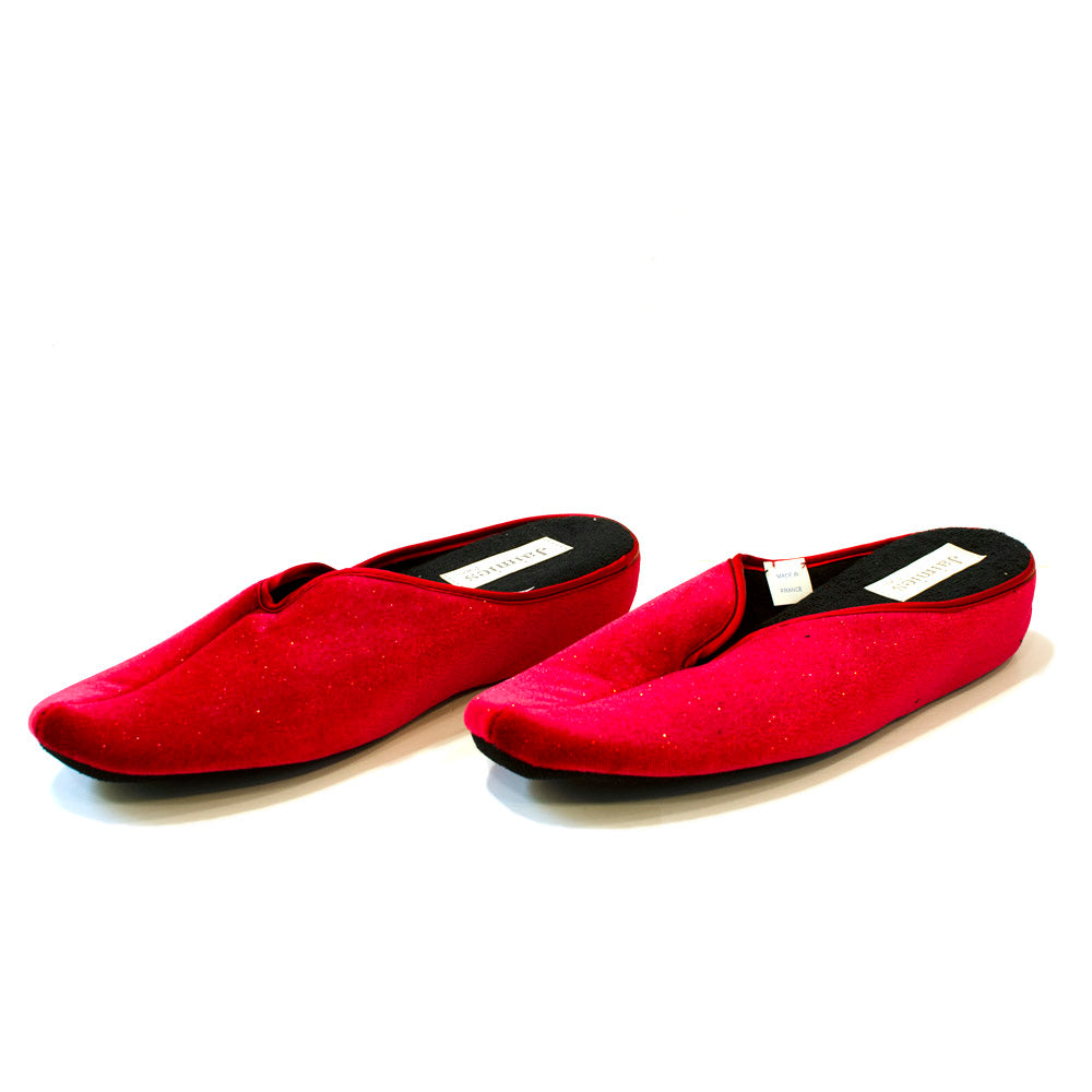 شبشب يوفر لك الراحة المثالية تنساب باللون الأحمر القاني مع نعل رمادي داكن بلمسة رغوية يجعله أكثر راحة, هذا نمط مستوحى من اسلوب الدول الغربية التقليدي واستخدام الحرير لقطب الخياطة في المقدمة,.