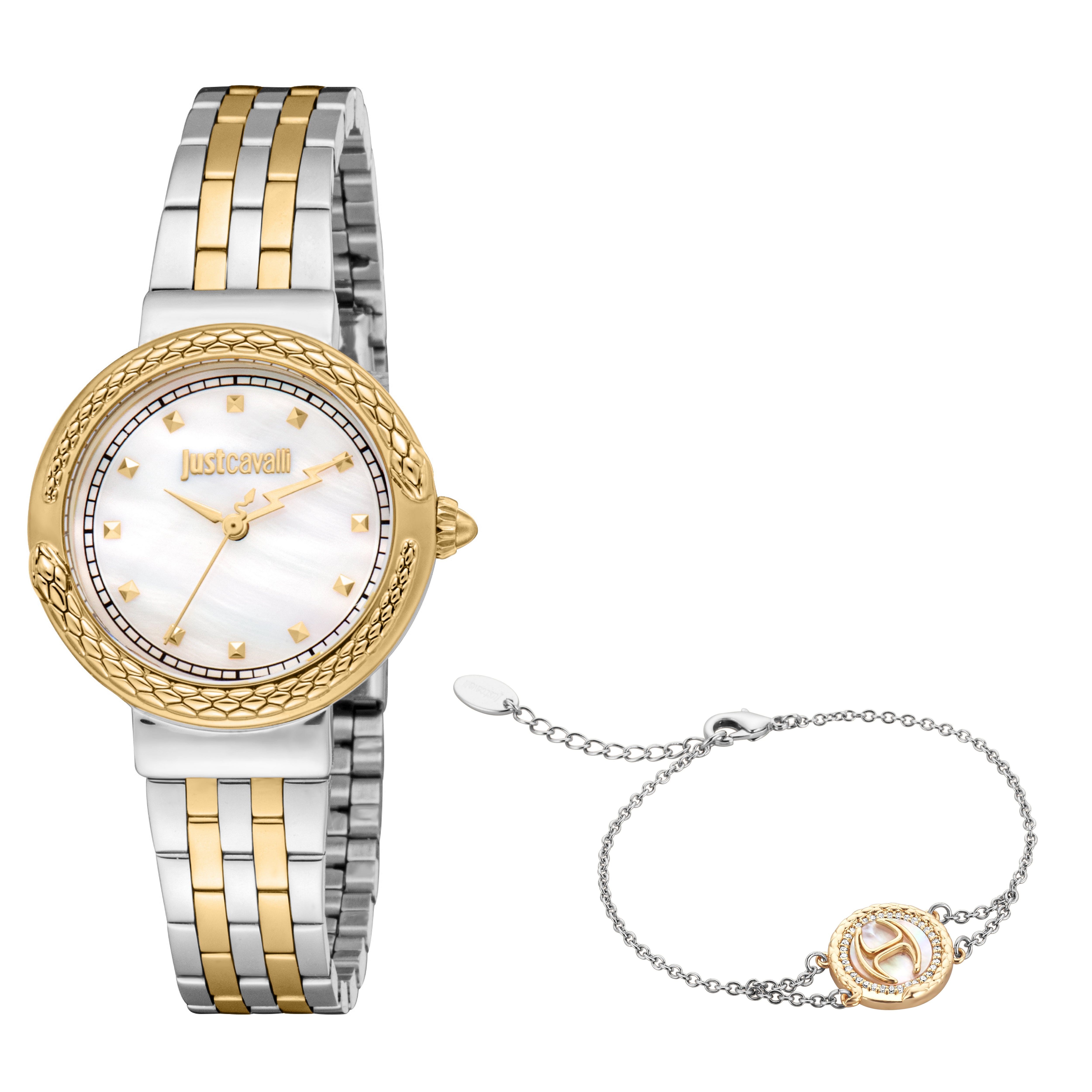 Just Cavalli Two-Tone Mother-of-Pearl Watch & Bracelet Set
