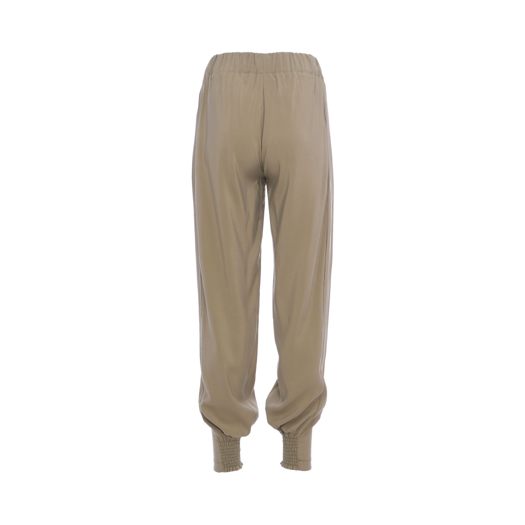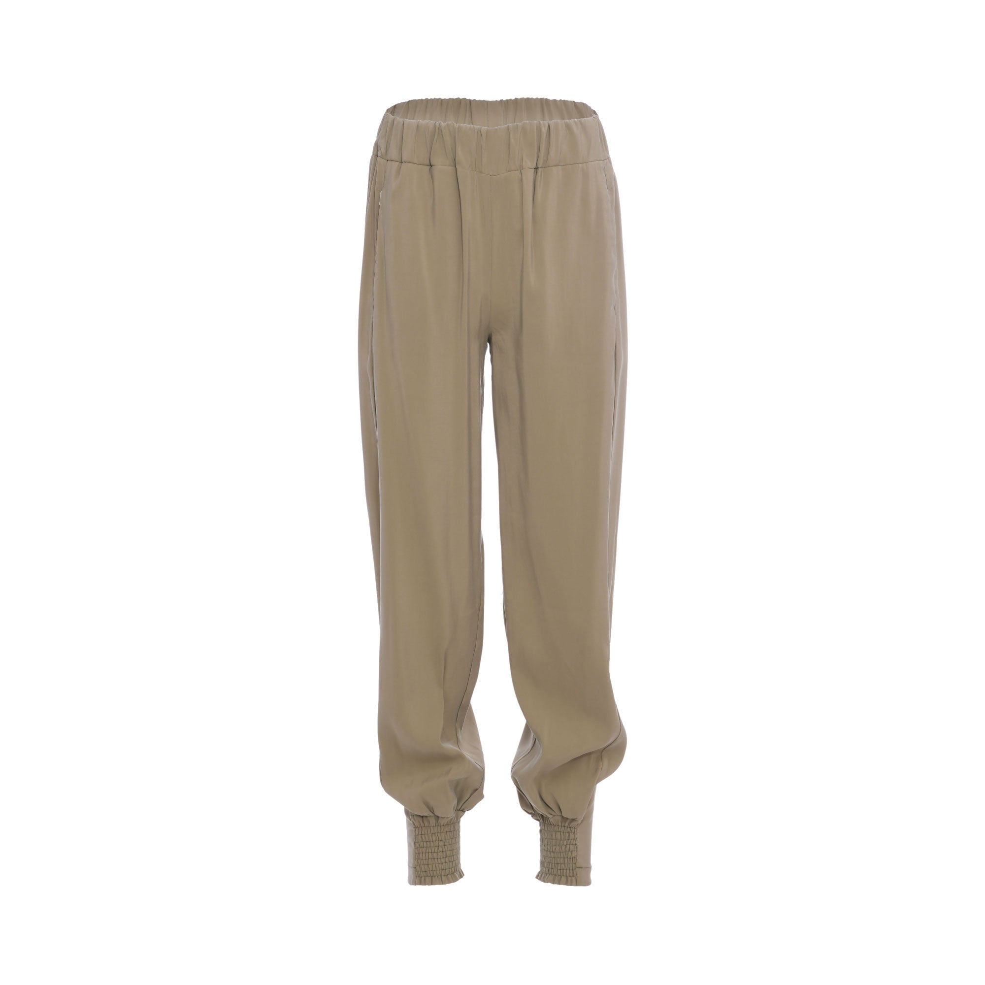 The Jijil Women's Verde Olivia Trouser is a comfortable and stylish addition to any woman's wardrobe. Crafted with a light weight fabric, it has an elasticated waistband and cuff that gives it a great fit without feeling bulky or tight. The color is a warm light green, making it perfect for pairing with any item in your wardrobe. The trouser features straight leg cut gives it an effortlessly sophisticated appearance. It is a perfect option for most occasions, making it an ideal choice for casual workwear or smart-casual events. Whether it's a warm spring day or paired with a blazer for the office, this trouser is sure to give you a stylish, yet comfortable look. SPECIFICATIONS