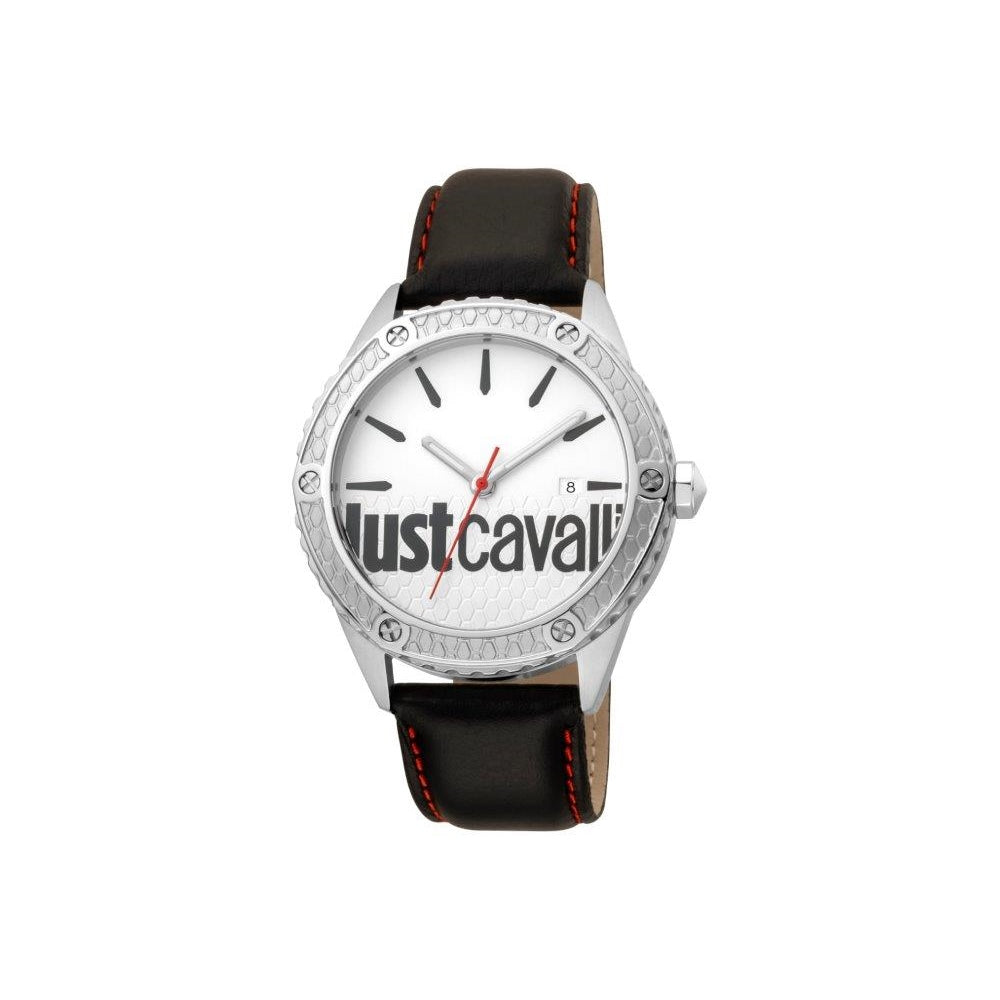 ساعة جست كافالي رجالية ذات هيكل فضي من الستانلس ستيل مع مينا بيضاء وحزام جلدي اسود
