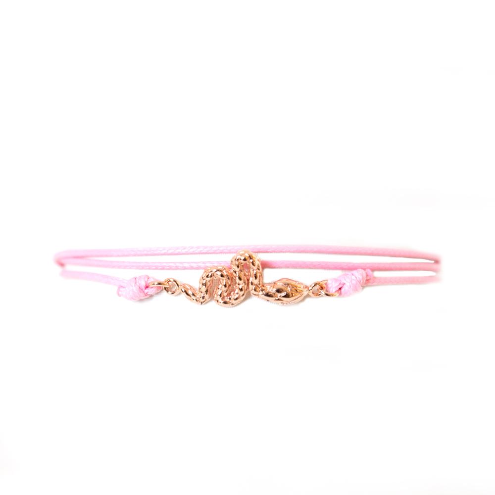 سوار جست كافالي خيط زهري مع شكل افعى بلون ذهبي وردي،