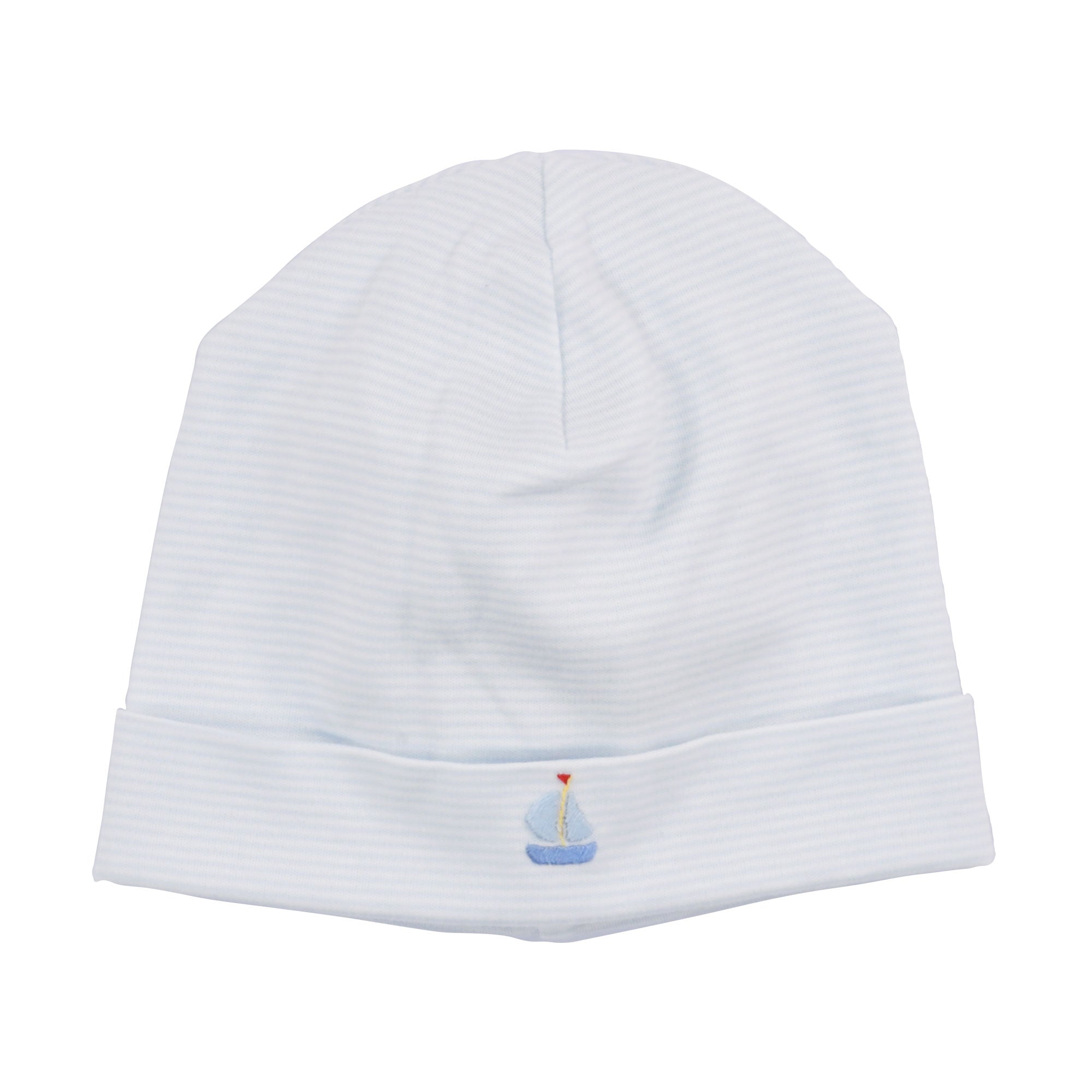The Kissy Kissy New Born Light Blue Baby Bonnet is perfectly designed for your precious baby. Crafted from the best quality 100% Pima cotton, this hat ensures snug fit, ultra-softness and warmth that your little angel requires for ultimate comfort. It features a striped design that is perfectly accented by a little yacht embroidered adornment. The design is fashionable and simply sweet, making your little one look super cute! The bonnet ensures full coverage keeping your baby’s head safely covered when out and about. Whether it’s out for a cozy stroll or to attend a special event, this bonnet will keep your baby looking as cute and classy as ever.