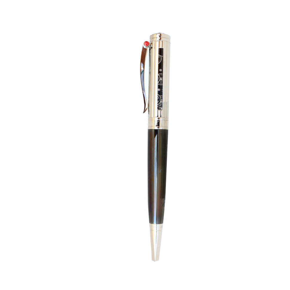 قلم كورلوف موديل فوياجر بلون ذهبي وردي، و أسود اصدار محدود 0678/1700 مع زجاج كريستالس مع صدف اسود مع تصميم براغي حمراء و ثقوب سوداء