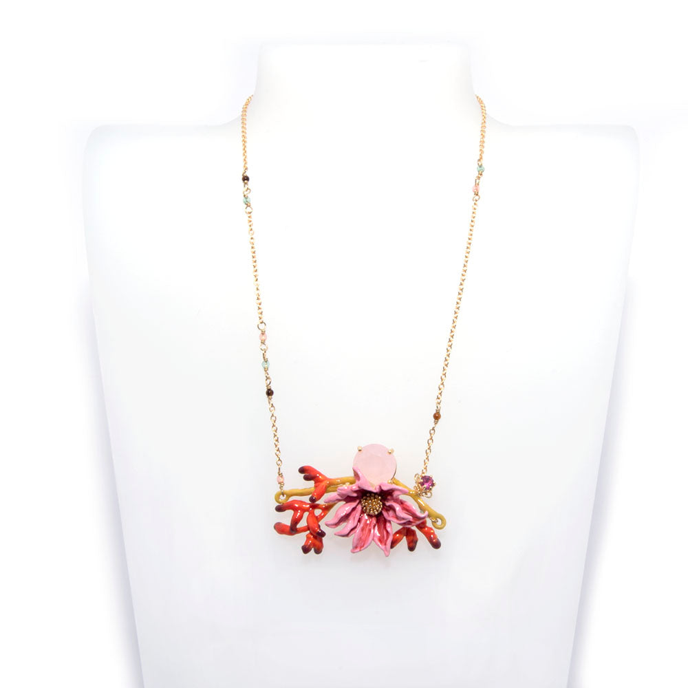 زهرة وردية ليه نيريدس مع المدقة الذهبية على عقد من الكريستال ذي الأوجه ، مقاس واحد