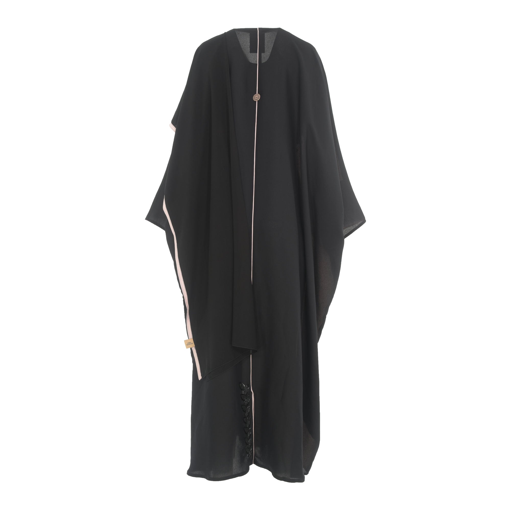 | The Nero Fashion Black and pink Abaya is the perfect way to make a fashion statement this season. This stylish abaya features a large size fit with long, loose sleeves and v neck style with pink pipeline on front and back . The abaya is embellished with beautiful sequins embroidery design to the front and back which adds a unique touch. The snap buttons at the front make it convenient to style this as both an Open Abaya Robe, and a Closed Abaya Look . This abaya is perfect for any occasion, from formal events to casual days out. Not only is it comfortable and stylish, but it also makes a great statement piece that will turn heads wherever you go. SPECIFICATIONS :