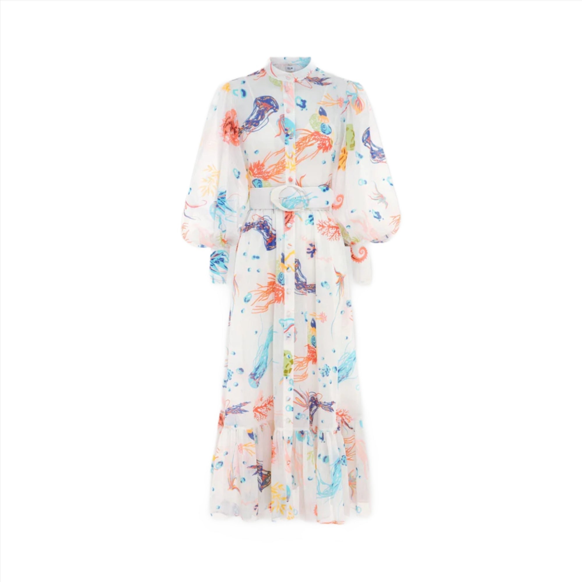 This season’s multi-hued Twilight Print, featuring a plethora of interconnected underwater animals, captures the carefree essence of marine life, evoking a sense of both joy and relaxation. Backdropped by a calming white, Twilight celebrates the wonders of nature by inviting us to embrace authenticity, live life abundantly, and envisage a world where we can be as the jellyfish are; free from constraints and bathed in internal fluorescence.