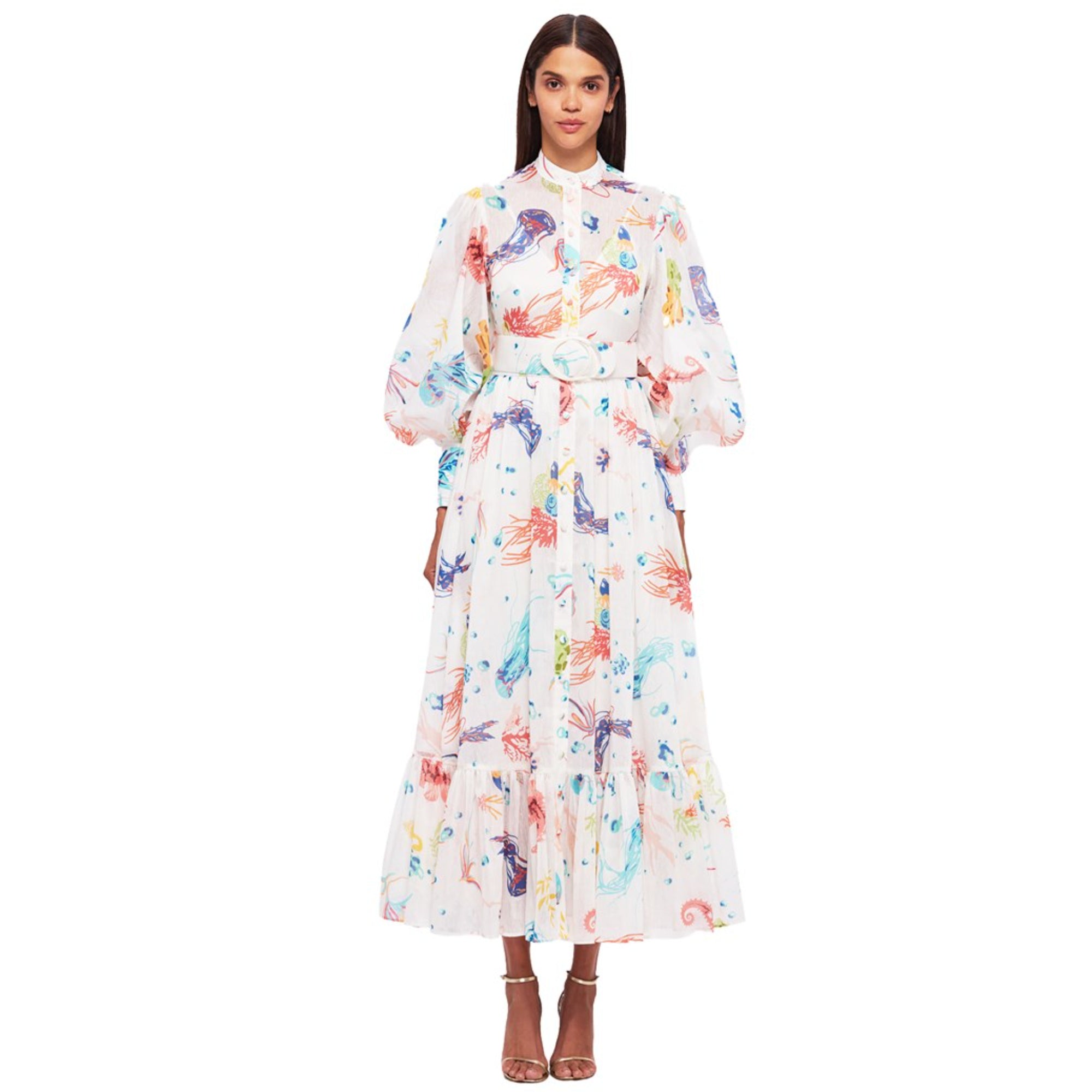 Leo Lin Women's Nayla Midi Dress Twilight Print in White