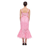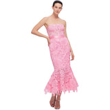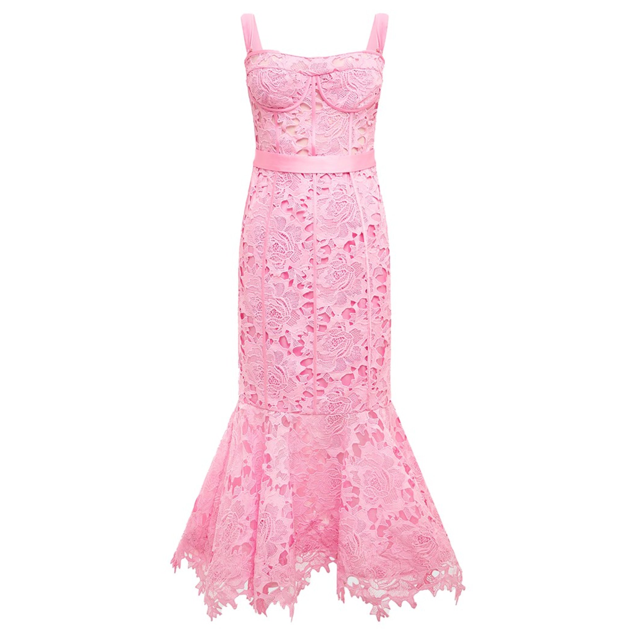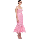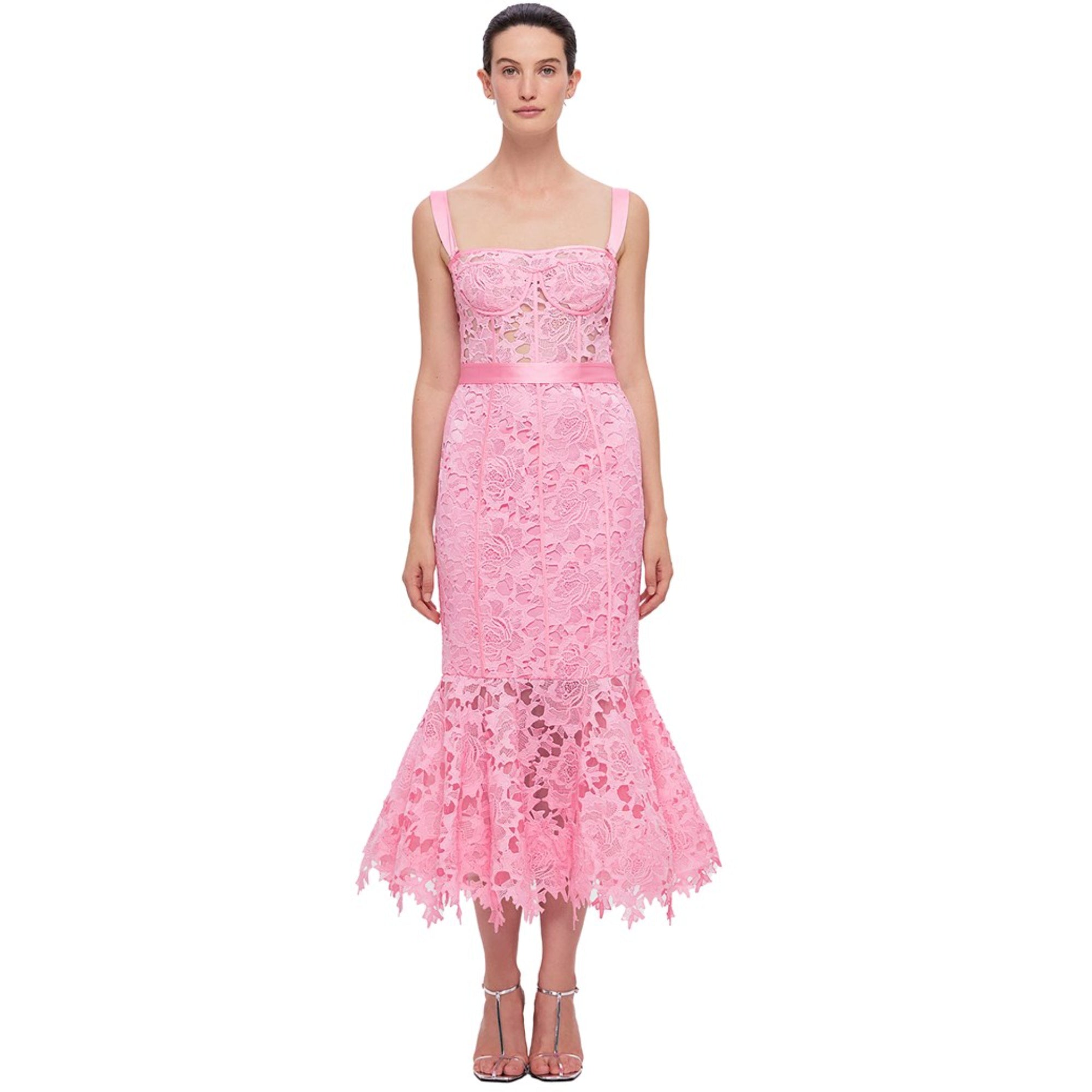 Leo Lin Women's Clover Lace Bustier Ruffle Midi Dress Candy Pink
