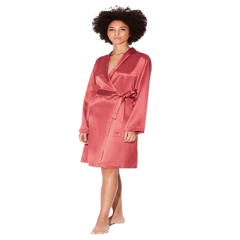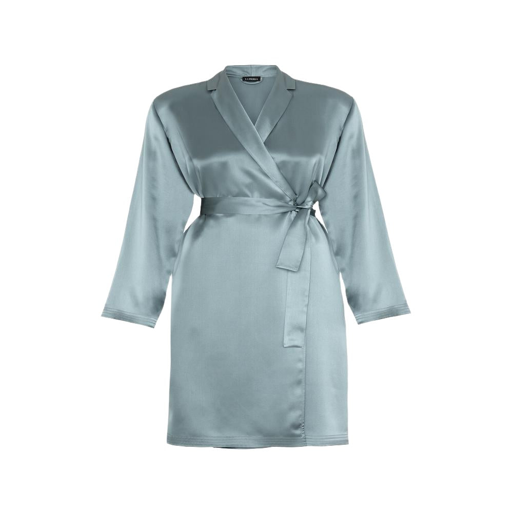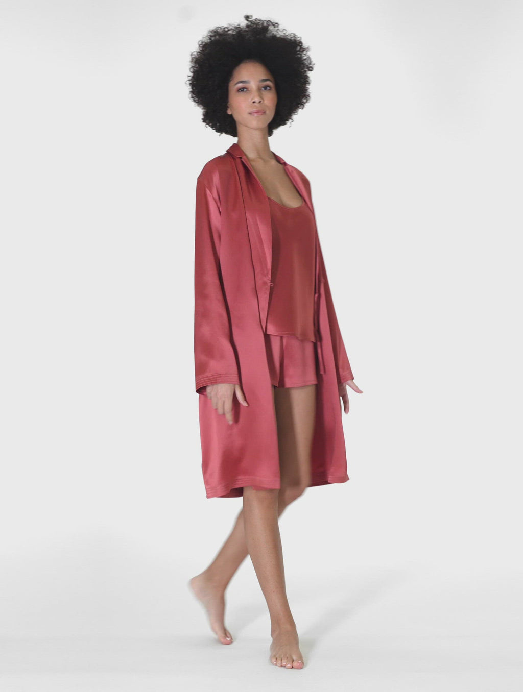 The La Perla Silk Short Robe is a beautiful piece of nightwear perfect for both lounging and sleeping. This robe is crafted from pure satin silk making it a luxurious indulgence and a refined comfort while being lighter in weight than traditional robes. The silhouette is robe is classically flattering with a relaxed fit that is finished with a notched lapel. The robe is secured with a sash belt at the waist. It is designed with adjustable straps and a slit to reverse for easy movement. This short robe is perfect for pairing with lingerie for an elegant style or with basics for a cozy look. Whether you're lounging at home or headed to bed, La Perla's silk short robe is a luxurious way to relax. SPECIFICATIONS