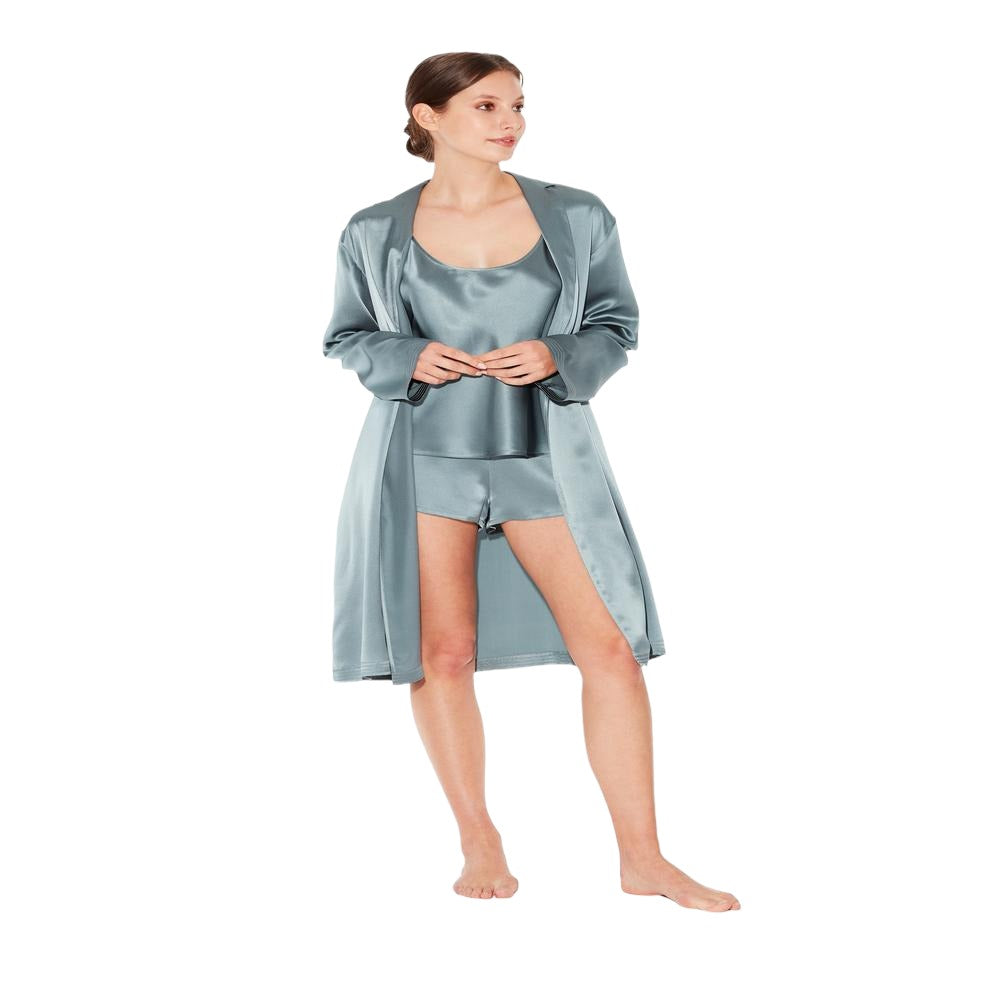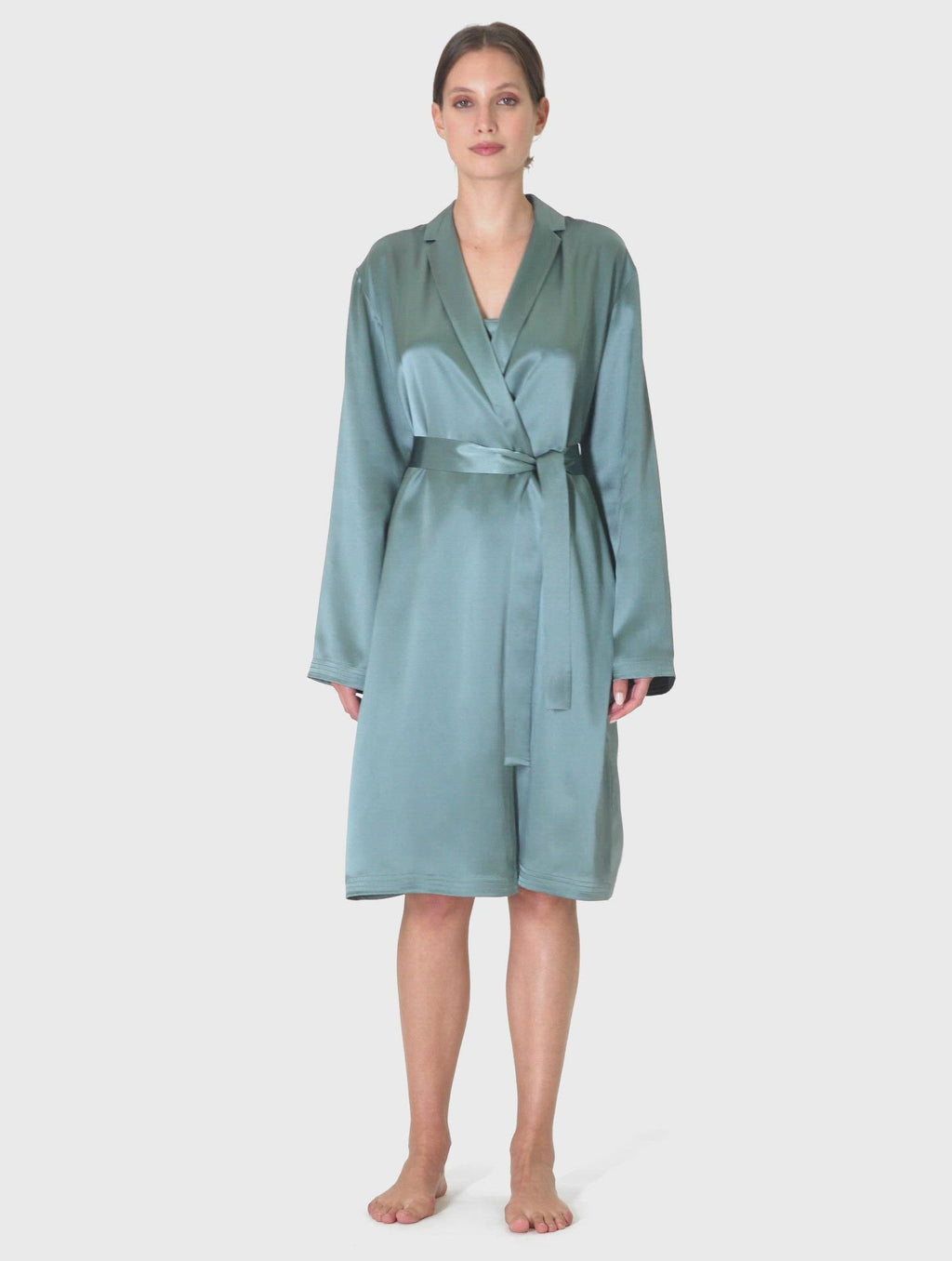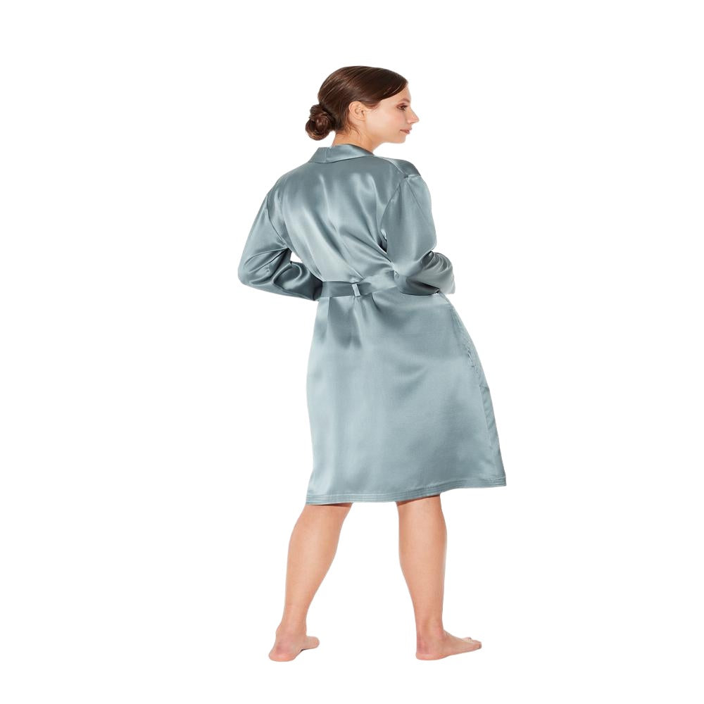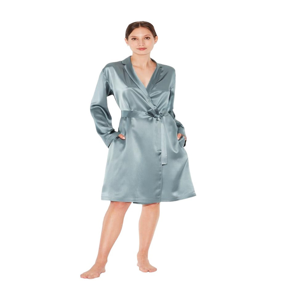 The La Perla Silk Short Robe is a beautiful piece of nightwear perfect for both lounging and sleeping. This robe is crafted from pure satin silk making it a luxurious indulgence and a refined comfort while being lighter in weight than traditional robes. The silhouette is robe is classically flattering with a relaxed fit that is finished with a notched lapel. The robe is secured with a sash belt at the waist. It is designed with adjustable straps and a slit to reverse for easy movement. This short robe is perfect for pairing with lingerie for an elegant style or with basics for a cozy look. Whether you're lounging at home or headed to bed, La Perla's silk short robe is a luxurious way to relax. SPECIFICATIONS