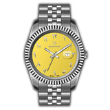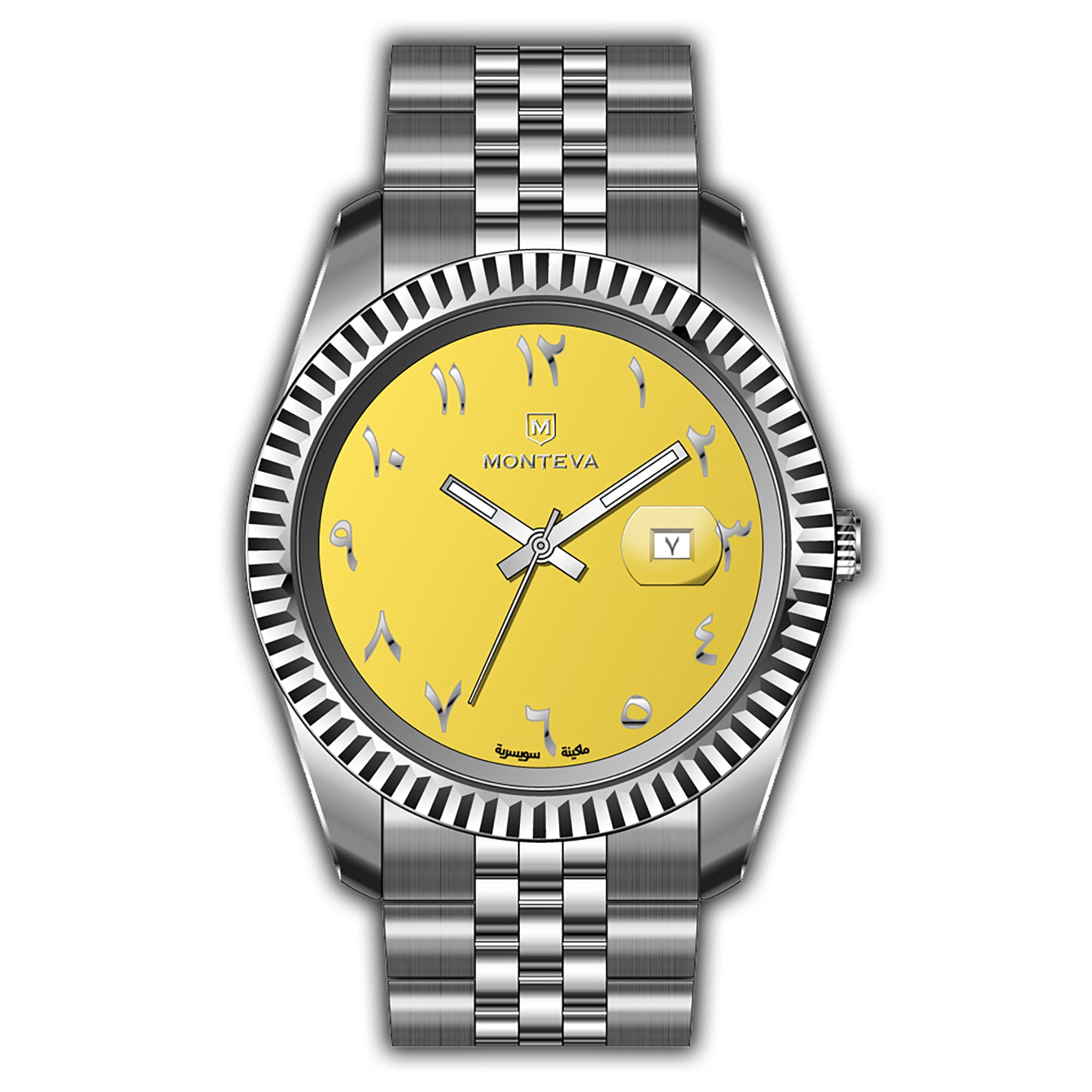 Monteva Gents Yellow Dial Watch with Arabic Numerals and Metal Band