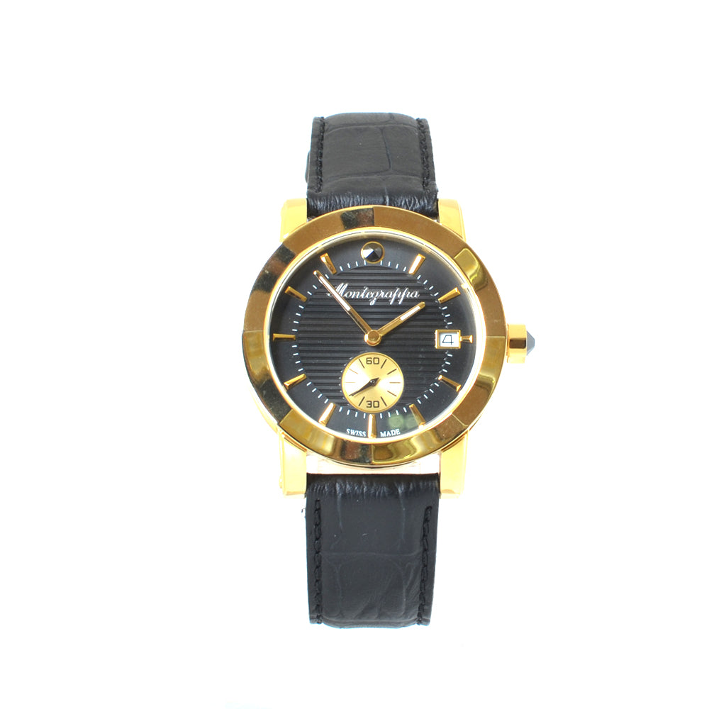 ساعة مونتغرابا نسائية من الستيل الاسود ميناء أسود وجلد أسود
