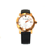 ساعة مونتغرابا تسائية نيرو اونو مطلية بالذهبي ميناء أبيض علي سوار أسود من الجلد