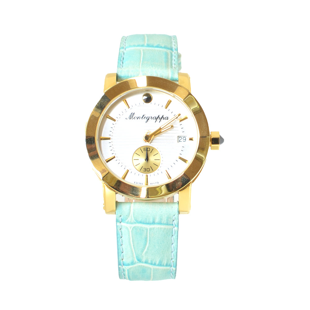 ساعة مونتغرابا تسائية نيرو اونو مطلية بالذهبي ميناء أزرق علي سوار أزرق من الجلد