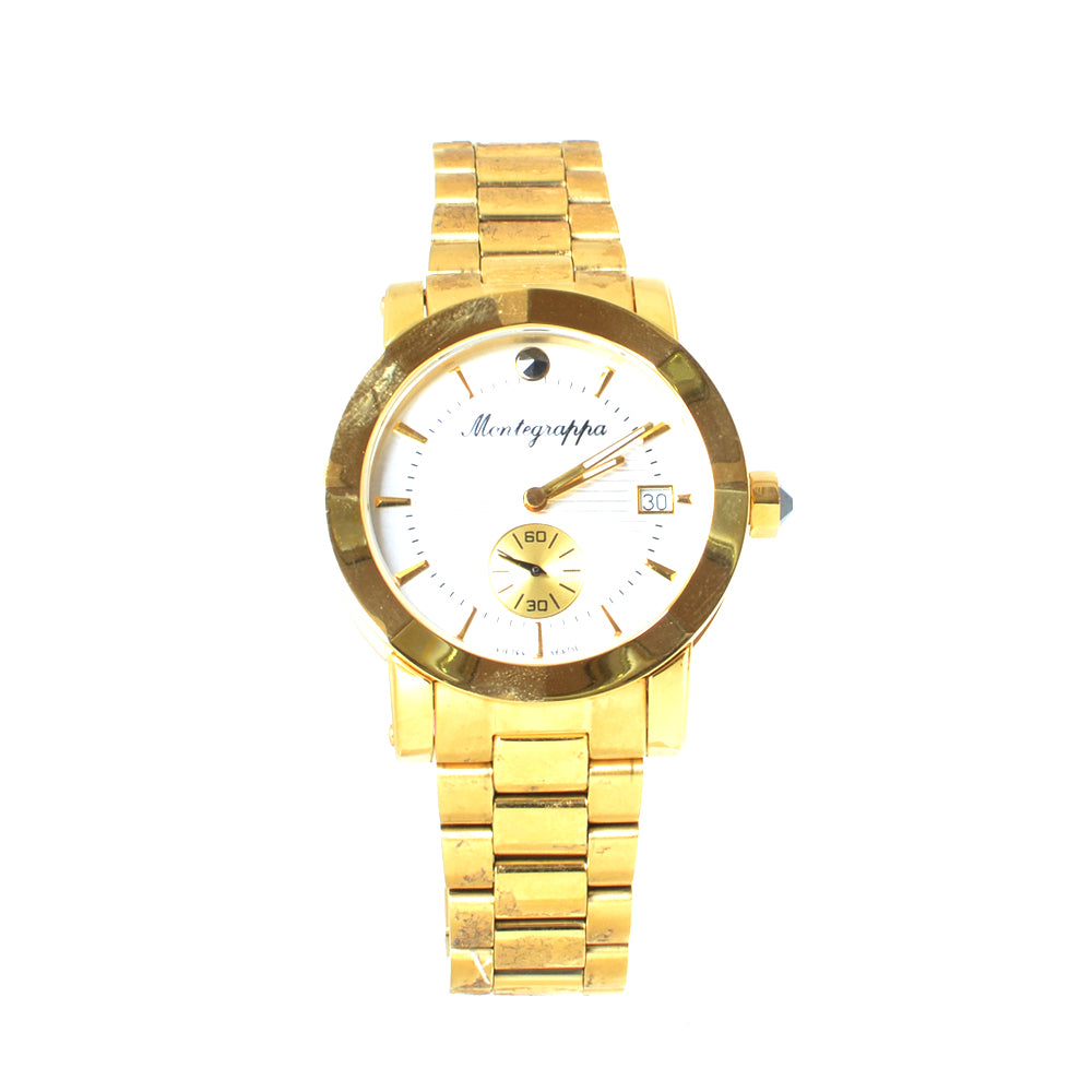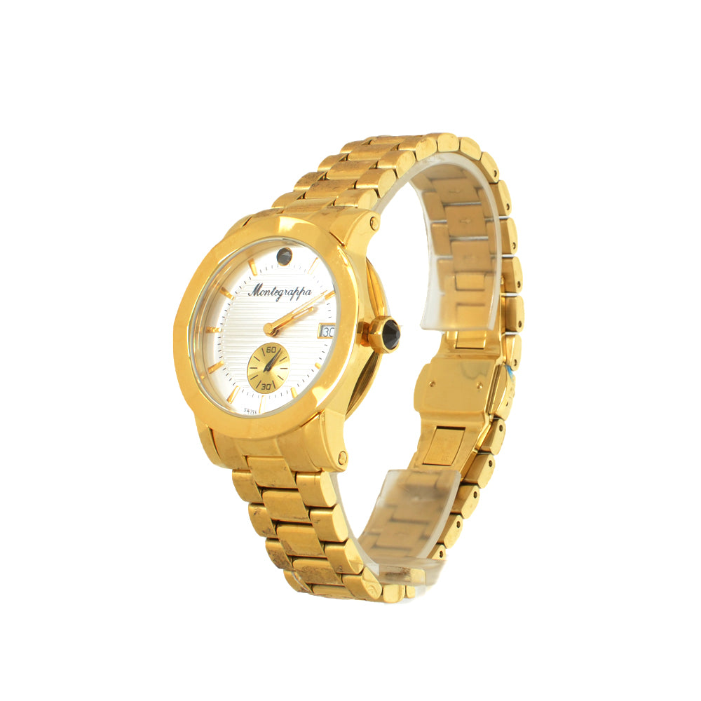 ساعة مونتغرابا تسائية نيرو اونو مطليه بالذهبي ميناء ابيض علي سوار من نفس اللون