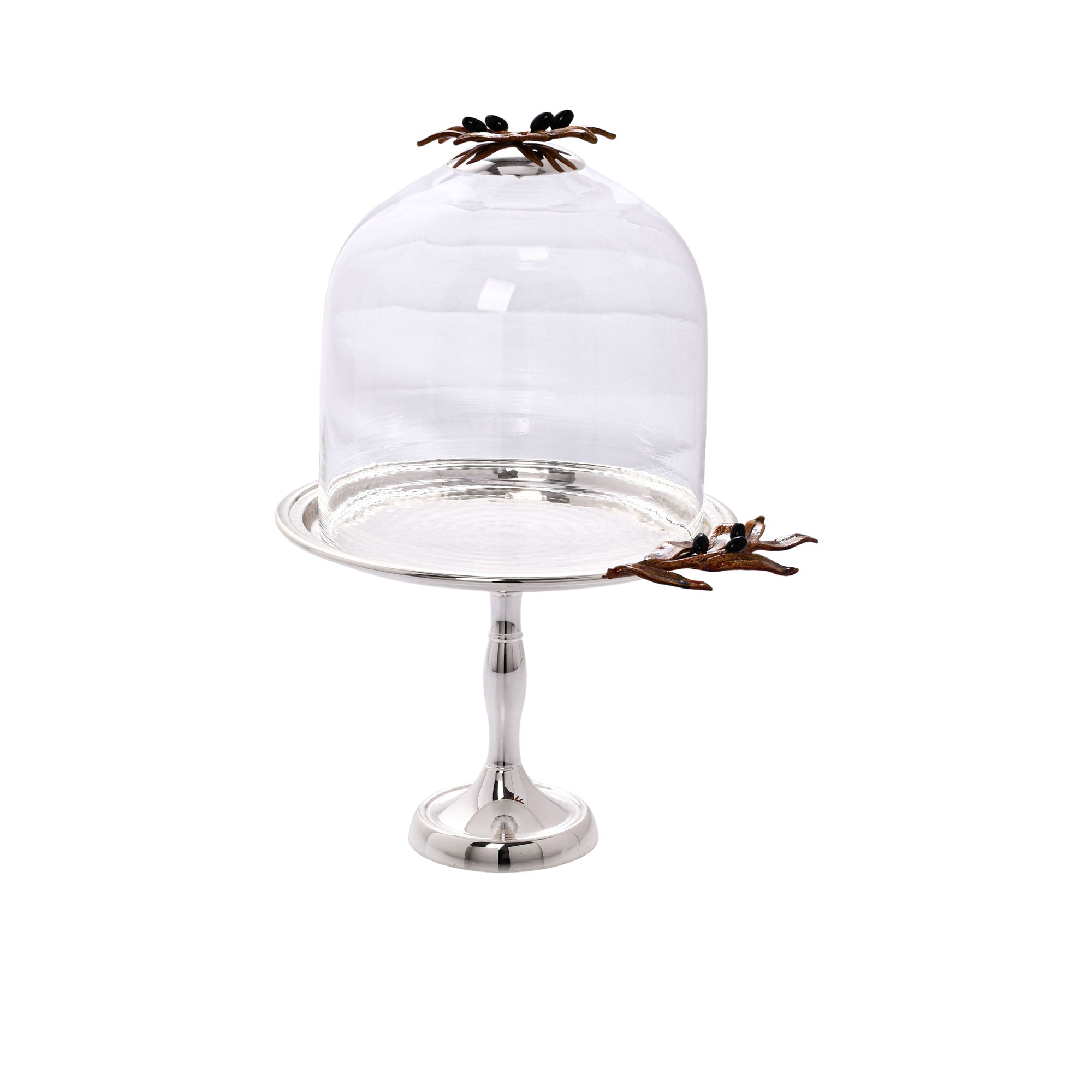 '- Select Home Silver Olive Cake Stand With Glass Cover.