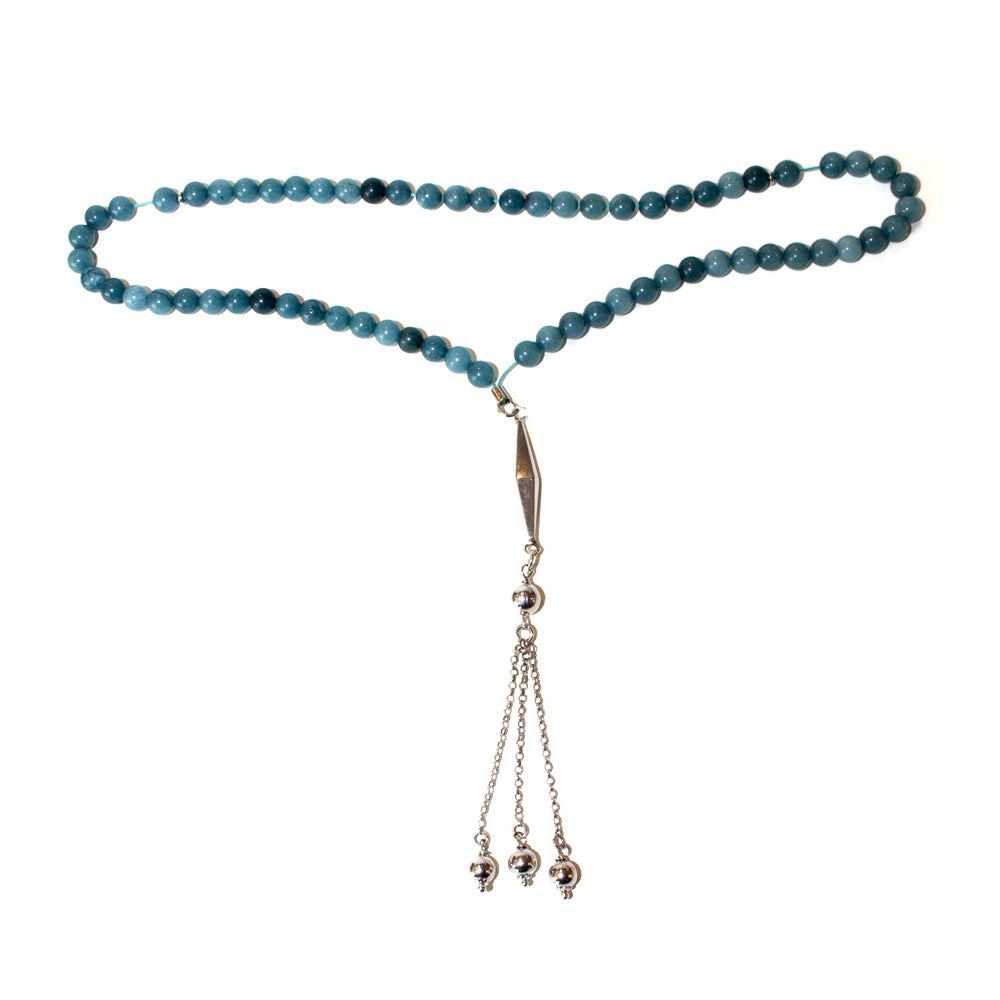 مسبحة اوزونيان من الفضة 925 مع حجر اليشم الازرق التايلندي