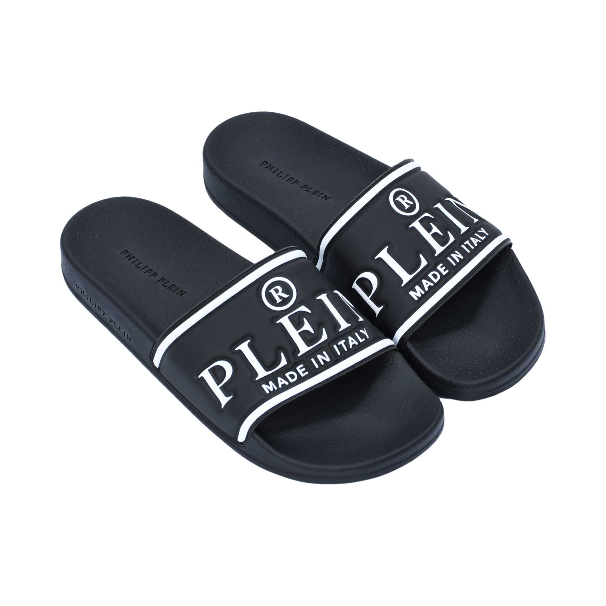 - Philipp Plein Men's Iconic Black Slider.