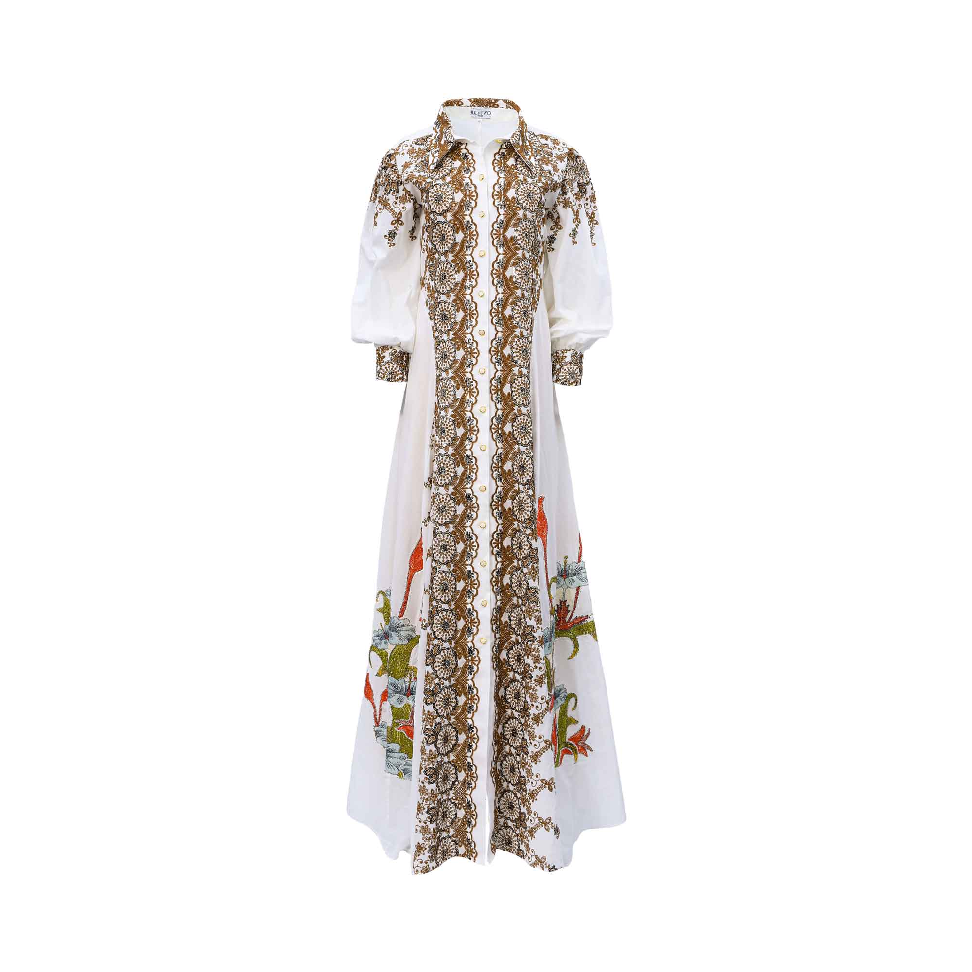| The Julytwo Women's Multi-color Long Dress is a stunning outfit that showcases both style and elegance. The dress features a collared neck and long cuff sleeves, adding a touch of sophistication. The dress is adorned with beautiful floral embroidery on the front and sleeve, giving it a feminine and charming look. The dress also comes with a lining, ensuring a comfortable and smooth fit. Its flared design adds a touch of playfulness and movement, making it perfect for any occasion. This dress is perfect for any women looking for a statement piece for their wardrobe. It can be dressed up or down, making it suitable for casual outings or formal events. This Julytwo dress is a must-have for any fashion-forward woman who wants to make a statement with her outfit. SPECIFICATIONS • Brand: Julytwo • Gender: Women • Multi-colored long dress • Collared neck and long cuff sleeves • Beautiful floral embroidery on front and sleeve • Feminine and charming look • Comes with lining for comfortable fit • Flared design adds playfulness and movement • Suitable for any occasion • Can be dressed up or down • Statement piece for wardrobe • Perfect for fashion-forward women • Versatile for casual or formal events • Must-have for making a statement with outfit • Washing Instructions: Dry clean only • Do not bleach • Do not tumble dry |