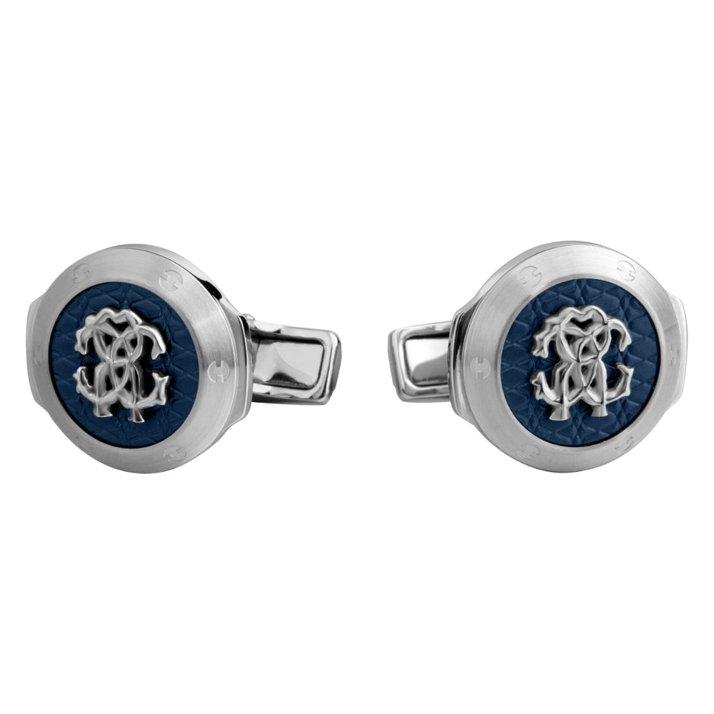 Roberto Cavalli Silver Color Cufflinks with Blue Color Center