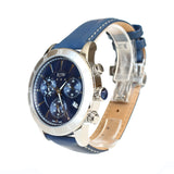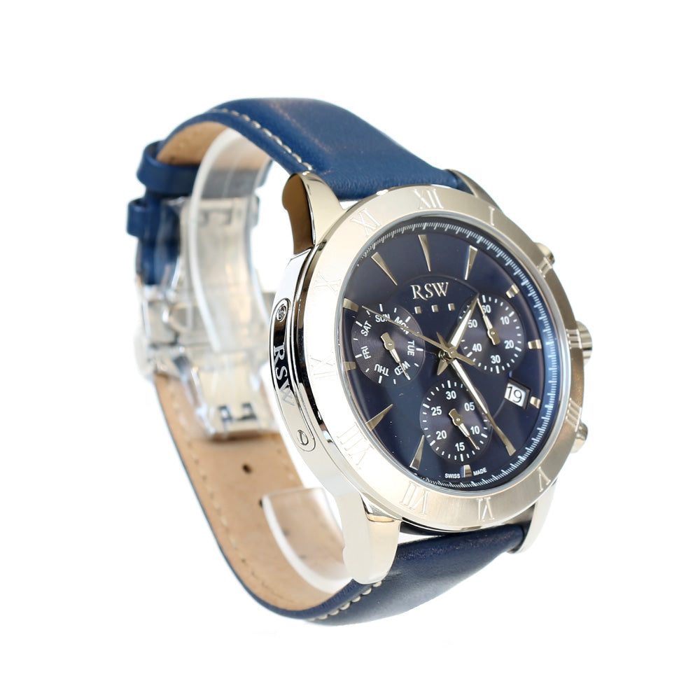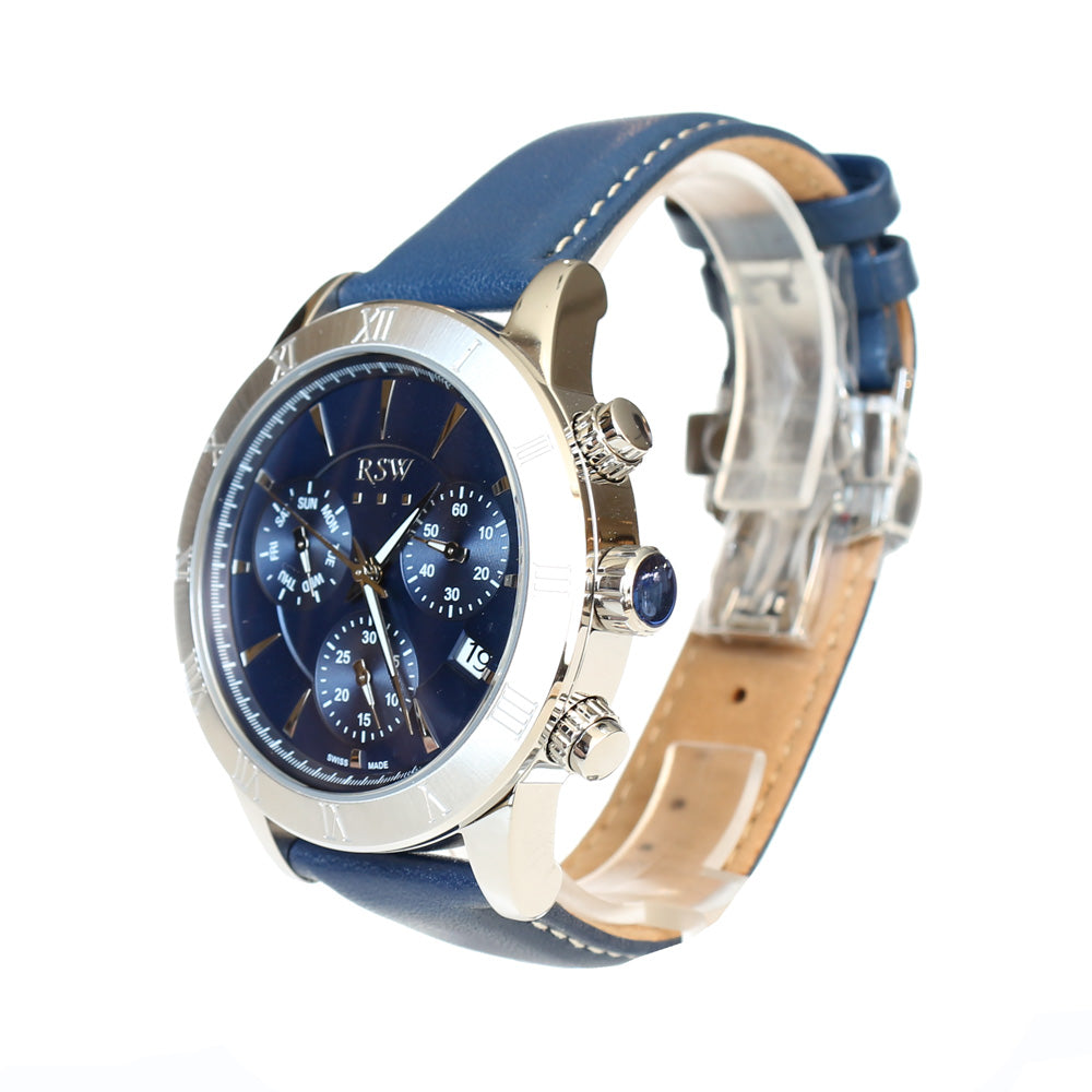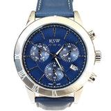 ساعة أر أس دابليو كوارتز رجالية ذات هيكل فضي من الستانلس ستيل مع مينازرقاء وحزام جلدي ازرق