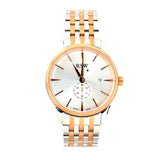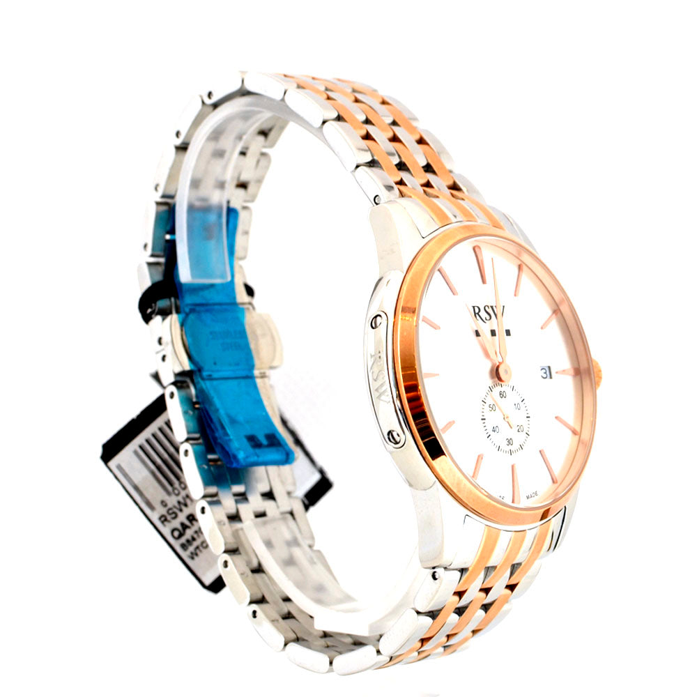 ساعة أر أس دابليو كوارتز رجالية ذات هيكل وس وسوار فضي و بلون ذهبي وردي، مع مينا بيضاء