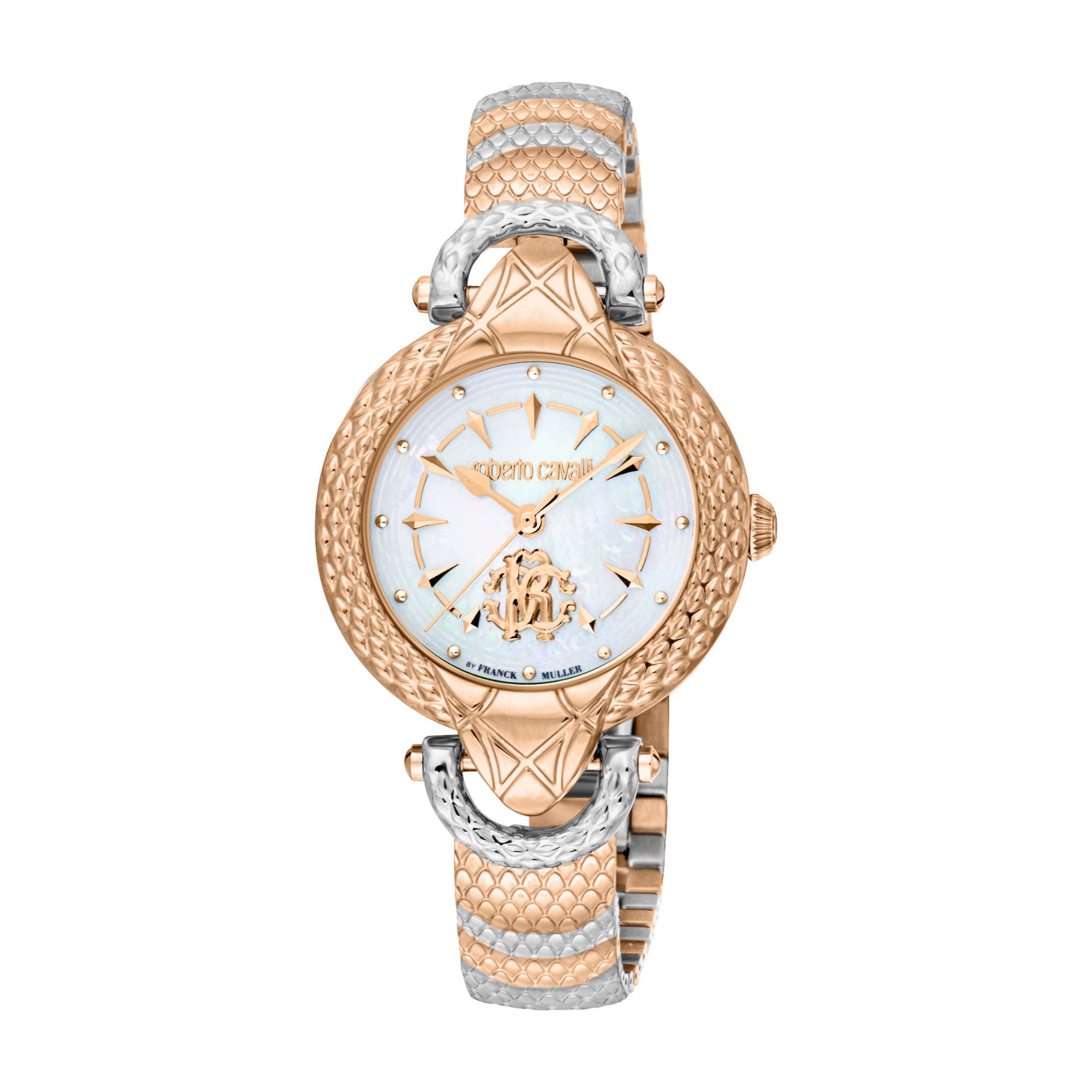 Roberto Cavalli Ladies Watch - Two Tone Silver & Rose Gold Case, White MOP Dial, Two Tone Silver & Rose Gold Metal Bracelet