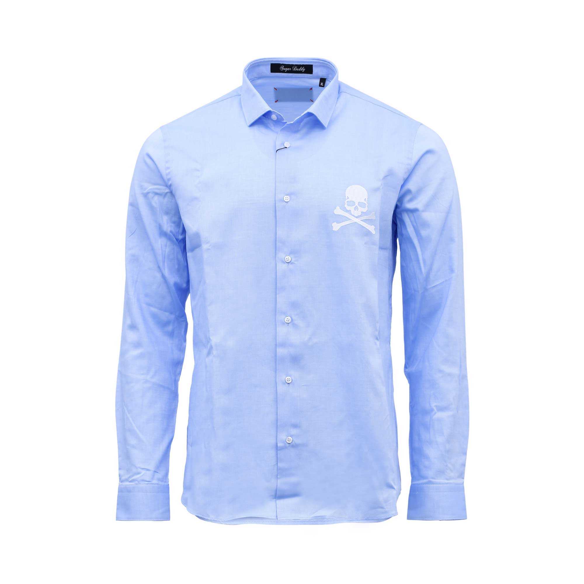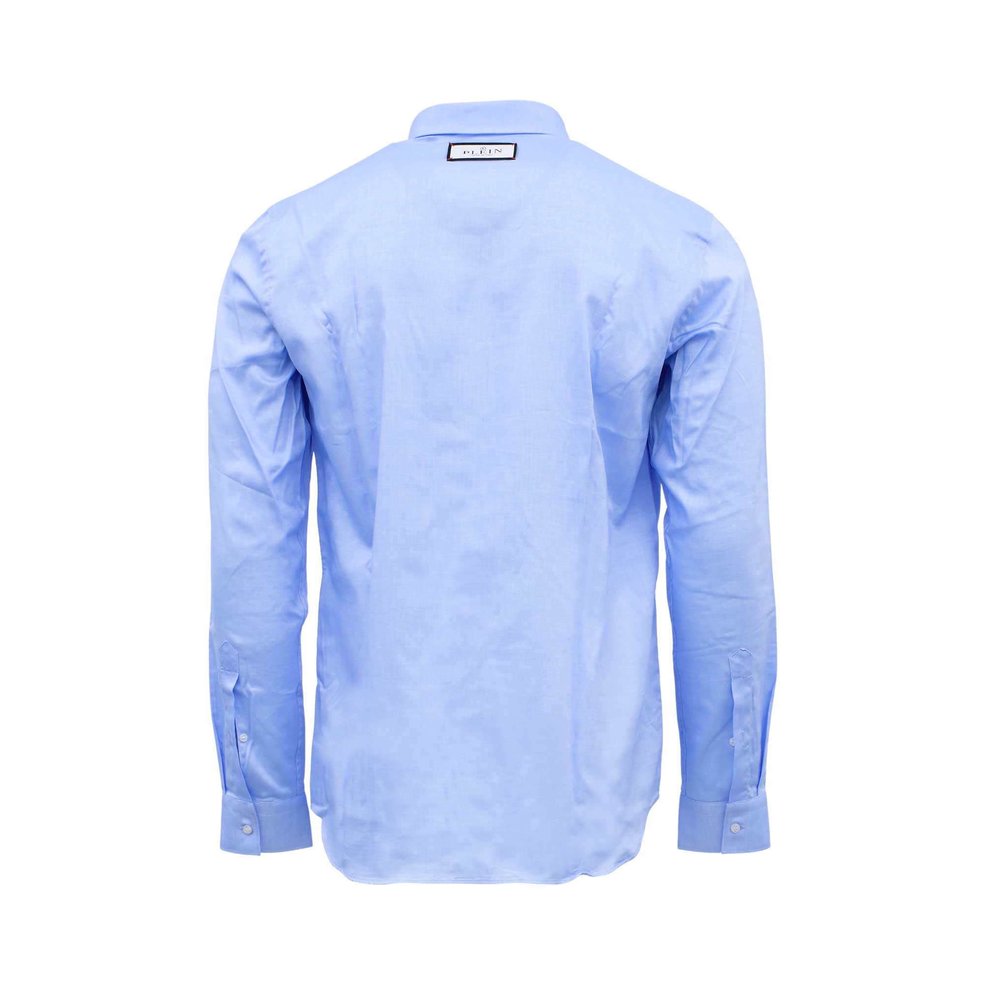 Elevate your wardrobe with this stylish Philipp Plein light blue shirt. Featuring a bold skull and crossbones embroidery, this piece is perfect for making a statement. Crafted from high-quality cotton for comfort and durability, this shirt is a must-have for any fashion-forward man.
