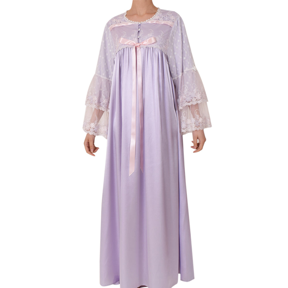 ساتان أرجواني مزين بالوردي والدانتيل يجعل ثوب النوم جميلًا جدًا. يمكن أن يكون من الشيفون المزدوج بنفس اللون