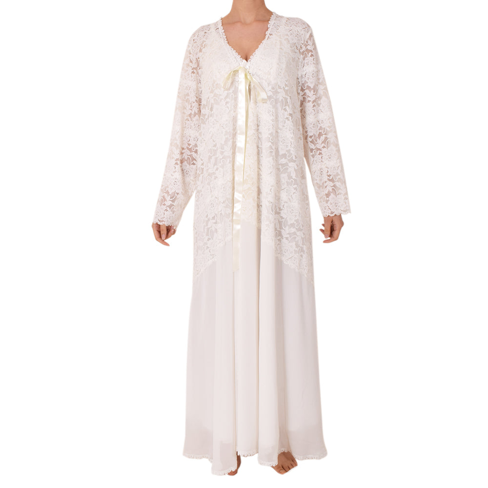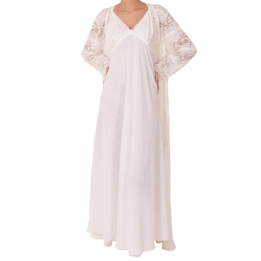فستان نوم مصنوع من الشيفون يعطي مظهر أنثوي ولطيف أيضًا على البشرة. من الأفضل ارتداؤها أثناء الحمل حيث يمكن إقفالها بشكل مريح