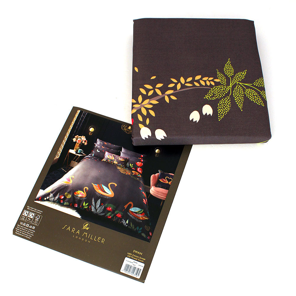 سارا ميللر لندن سوان للمفروشات طباعة أنيقة تتميز بالطيور الجميلة وأوراق الشجر الملونة في بيئة سحرية مقمرة. مطبوع رقميا على 220 تي سي قطن ساتين.