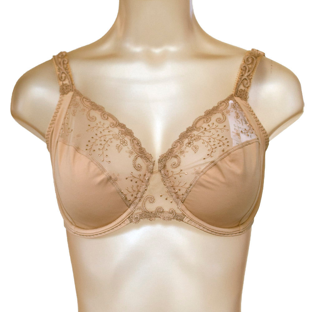 حمالة صدر بكاب كامل مع تطريز فوق الأشرطة وكاب علوي مطرز. لديها لوحة جانبية معززة مرئية لاحتواء التمثال وتطمئن المستهلك ، وكاب سفلي ولوحة تقوية جانبية مع بطانة قطنية. مطرزة من الوسط بتطريز من التول الصلب لتوفير خفة مع الحفاظ على ملائمة جيدة.