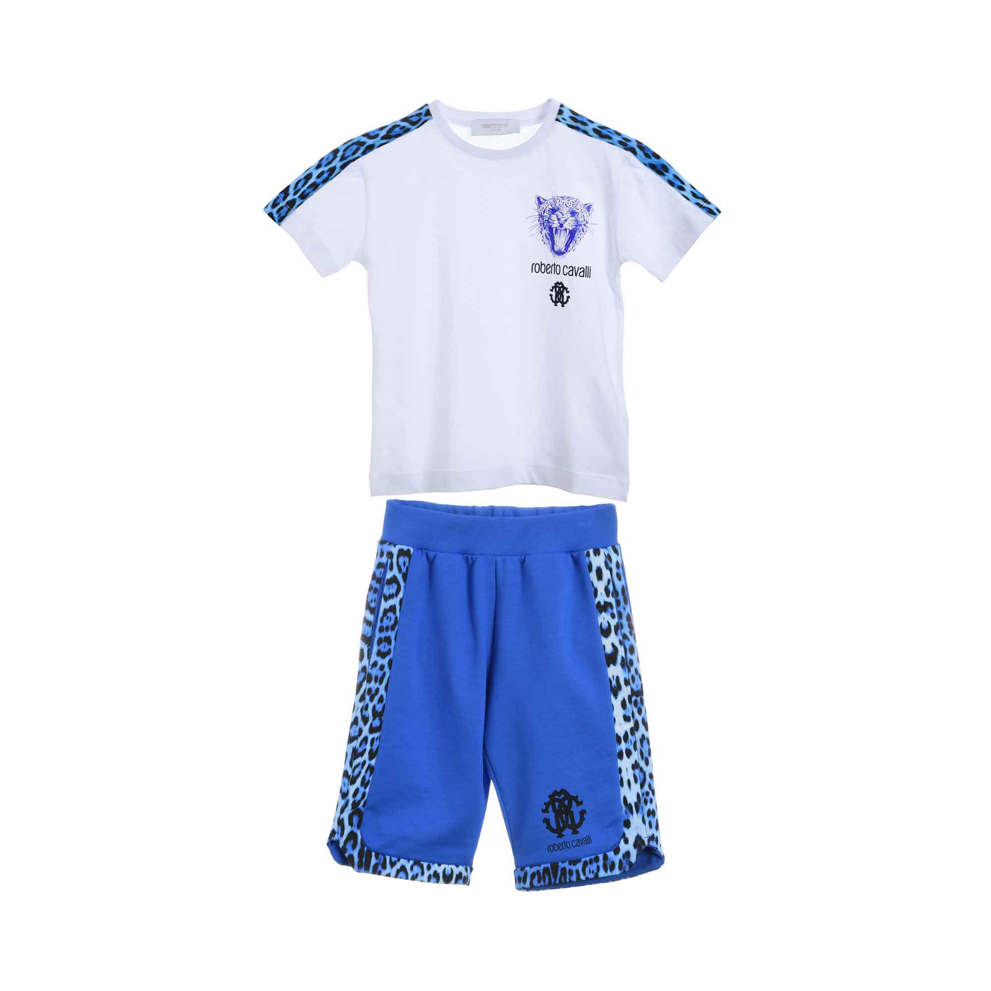 Roberto Cavalli Kids Boy's White & Blue Set of T-Shirt & Bermuda