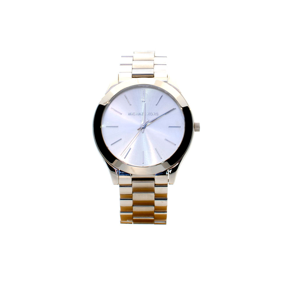 ساعة مايكل كورس نسائية ذات هيكل و سوار من الستانلس ستيل مع مينا فضية