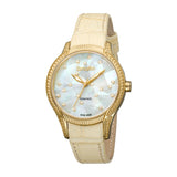 ساعة سمالتو نسائية ذات هيكل ذهبي من الستانليس ستيل مع مينا صدفية مرصعة بالألماس وحزام جلدي كريمي