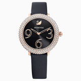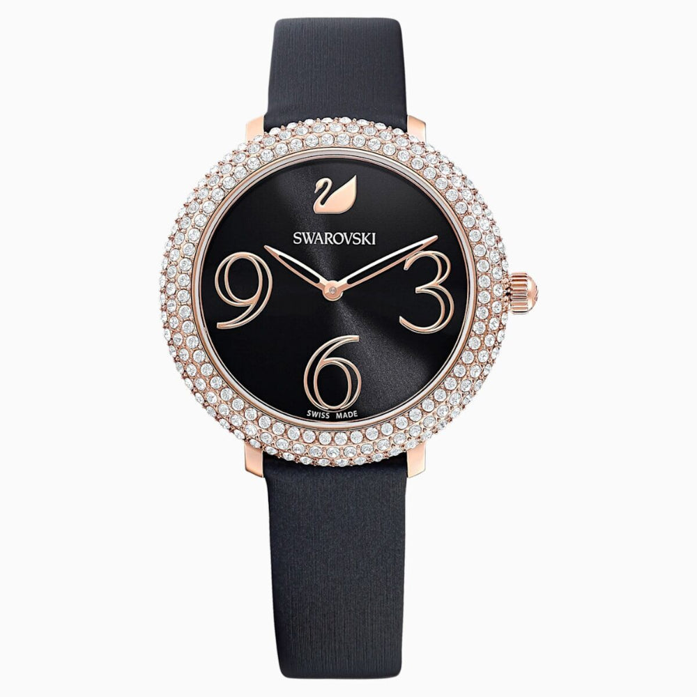 تألق بجمال مع هذه الساعة الرائعة ، التي تحتوي على١٧٨ حجر من الكريستال الصغير على الحافة. ويكمل هذا التصميم الشاب والحيوي قرصًا شمسيًا أسودًا مبهجًا ، وحافظة من الفولاذ المقاوم للصدأ بلون ذهبي وردي ، وحزام من الحرير الأسود. كامل من تألق سواروفسكي المميز ومثالي للارتداء اليومي. المواصفات: العلبة - 34 مم ؛ مقاومة للماء حتى ٥٠ :ك١ الزجاج معدني ؛ بلد المنتج:سويسرا