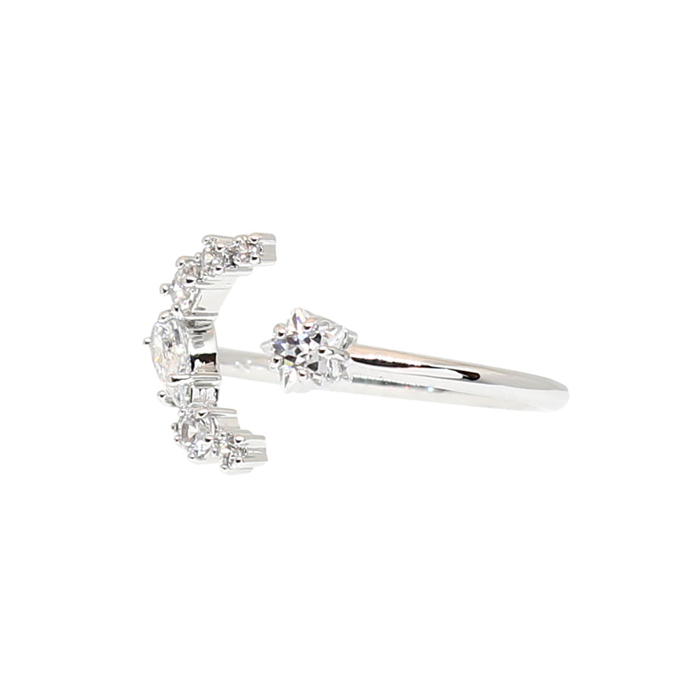 احتفالاً بسحر سماء الليل ، يتخلل هذا الخاتم المفتوح بقمر ونجمة متلألئة بأحجار واضحة.