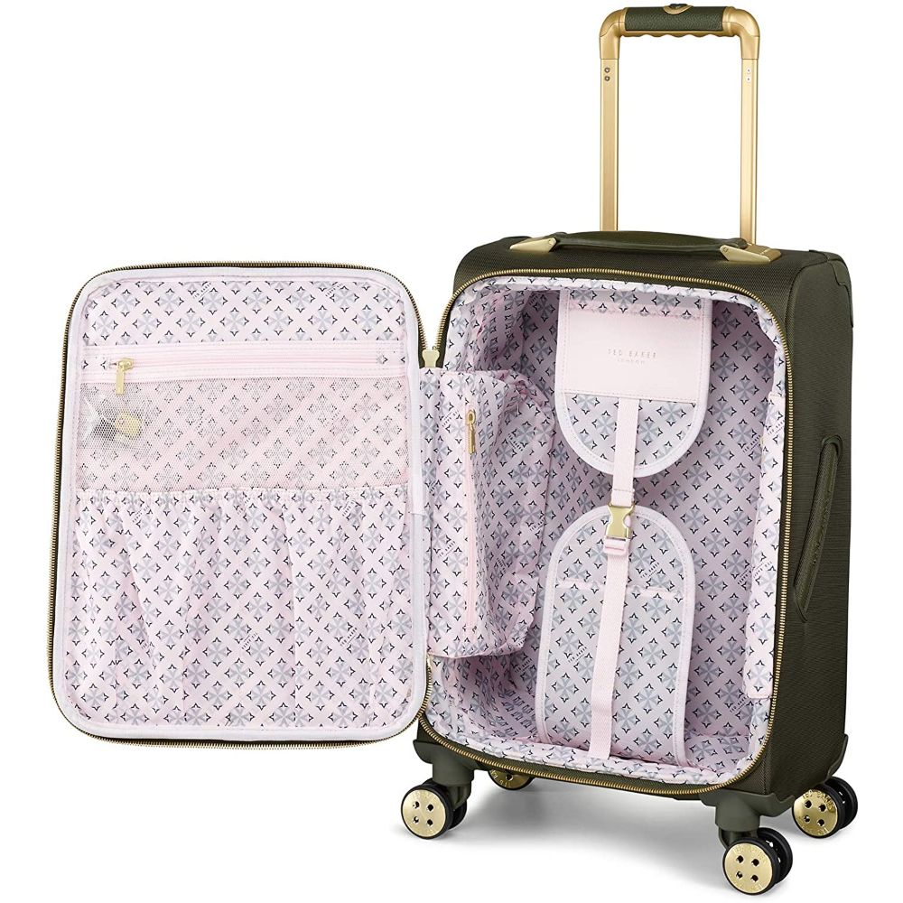 "تم تصميم مجموعة حقائب تيد بيكر في المملكة المتحدة وتطويرها ، وهي مشبعة باهتمام العلامة الثابت بالتفاصيل والأسلوب الانتقائي. وهي مفصّلة بأجهزة ذات لون ذهبي وردي لإضفاء لمسة مميزة ، تضفي حقيبة المقصورة هذه سحرًا وعمليًا على رحلاتك ؛ تعمل هذه الحقيبة الواسعة بسلاسة على أربع عجلات دوارة ، وهي مزودة بجيوب إضافية وقفل TSA وبطانة نابضة بالحياة مطبوعة. (الارتفاع 55 سم ، العرض 35.5 سم ، العمق 26.5 سم)